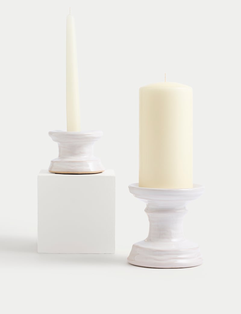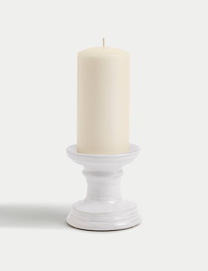 Add a sophisticated touch to your interior with this simple but stylish candle holder. It's crafted from ceramic and is perfectly sized to hold a pillar candle.