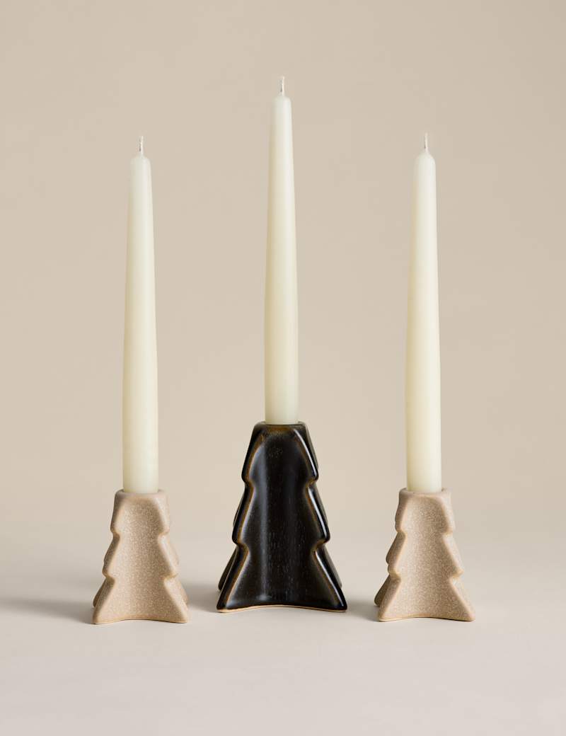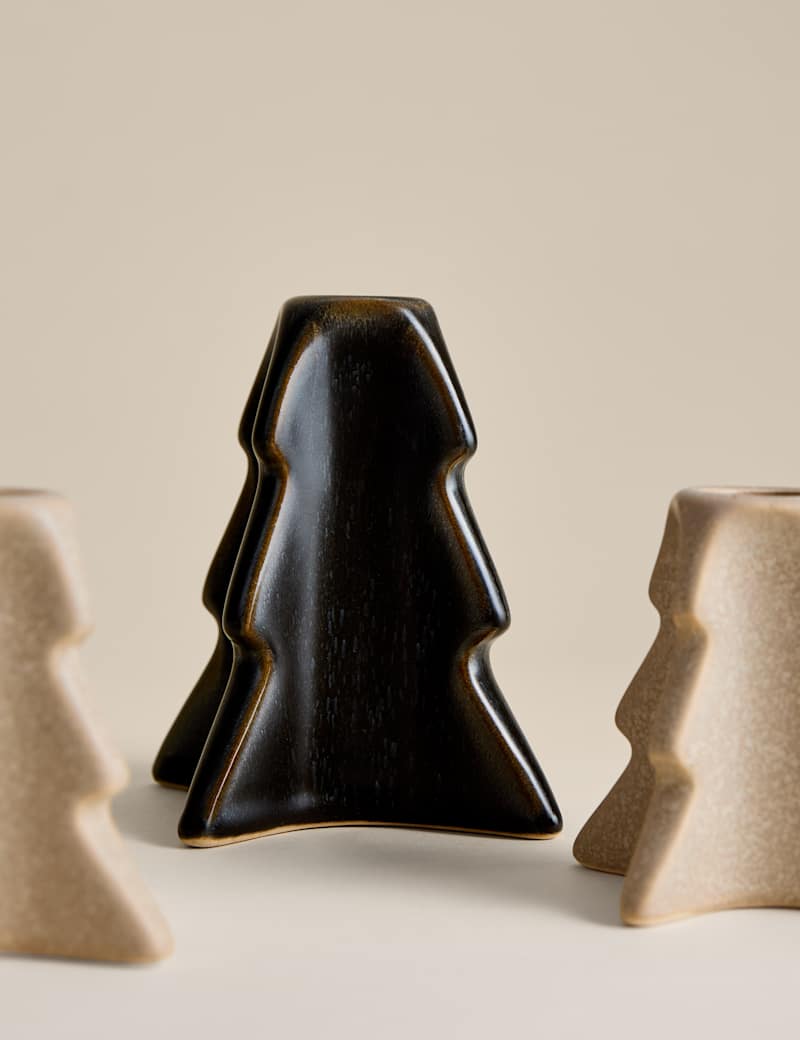 This set of three candle holders offers a subtle seasonal look. They're made from durable ceramic in tree-shaped designs, including two small and one large.