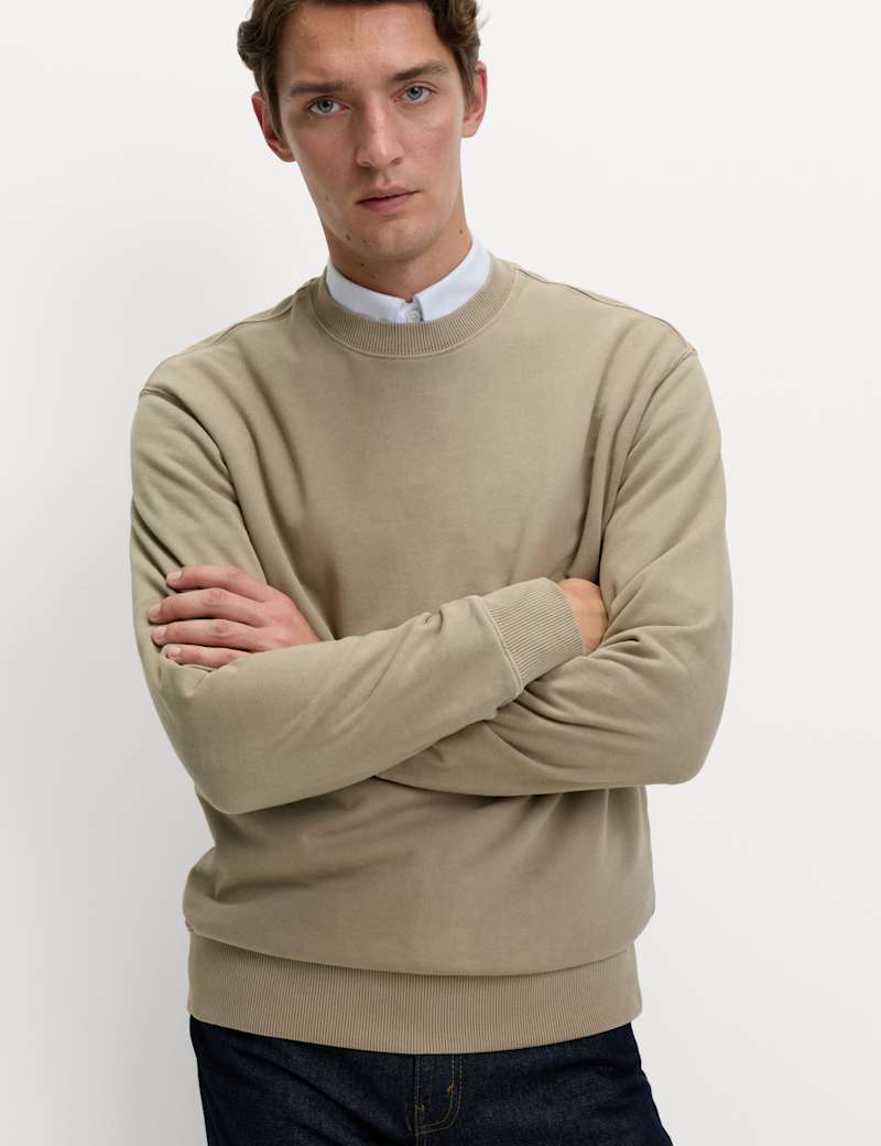 This breathable sweatshirt offers effortless comfort with a smooth finish. The garment-dyed treatment creates an authentic, laid-back aesthetic while the relaxed fit ensures easy everyday wear. Finished with stretchy ribbed trims at the crew neck, cuffs and hem for a secure yet comfortable fit. 0