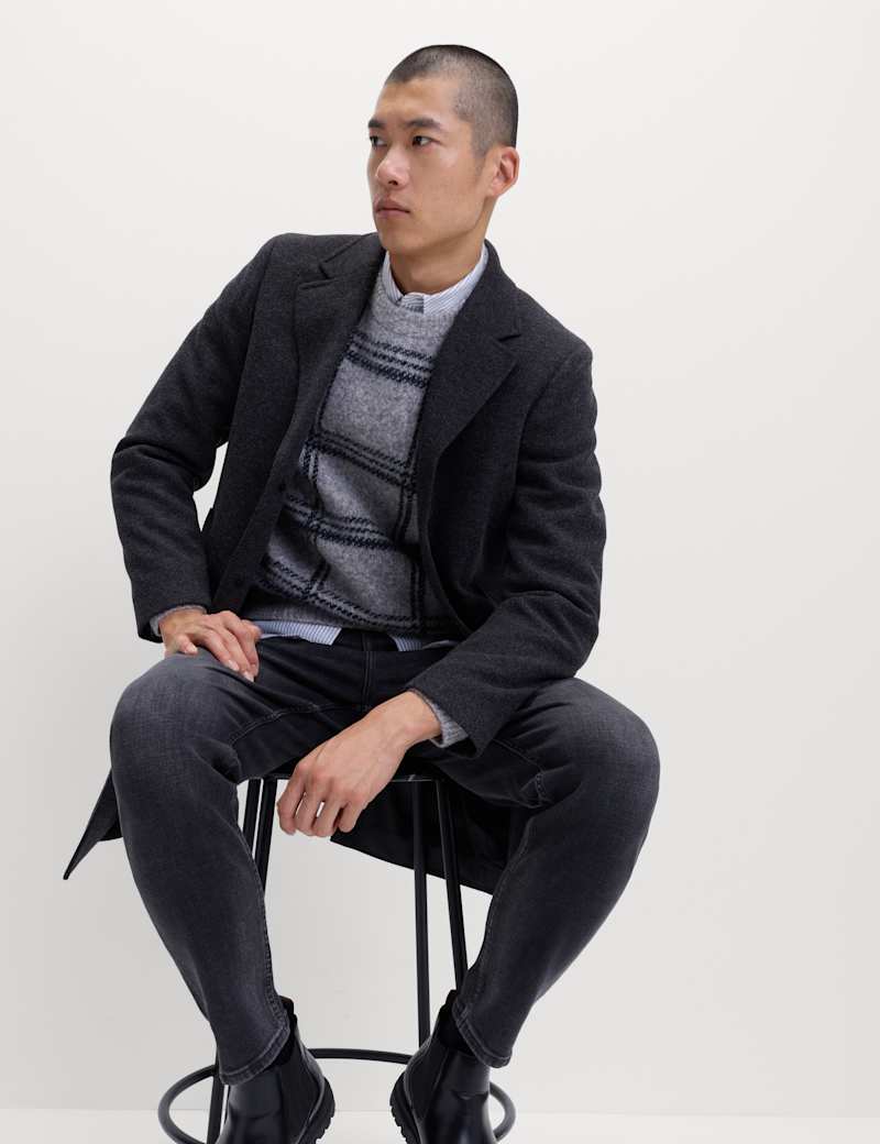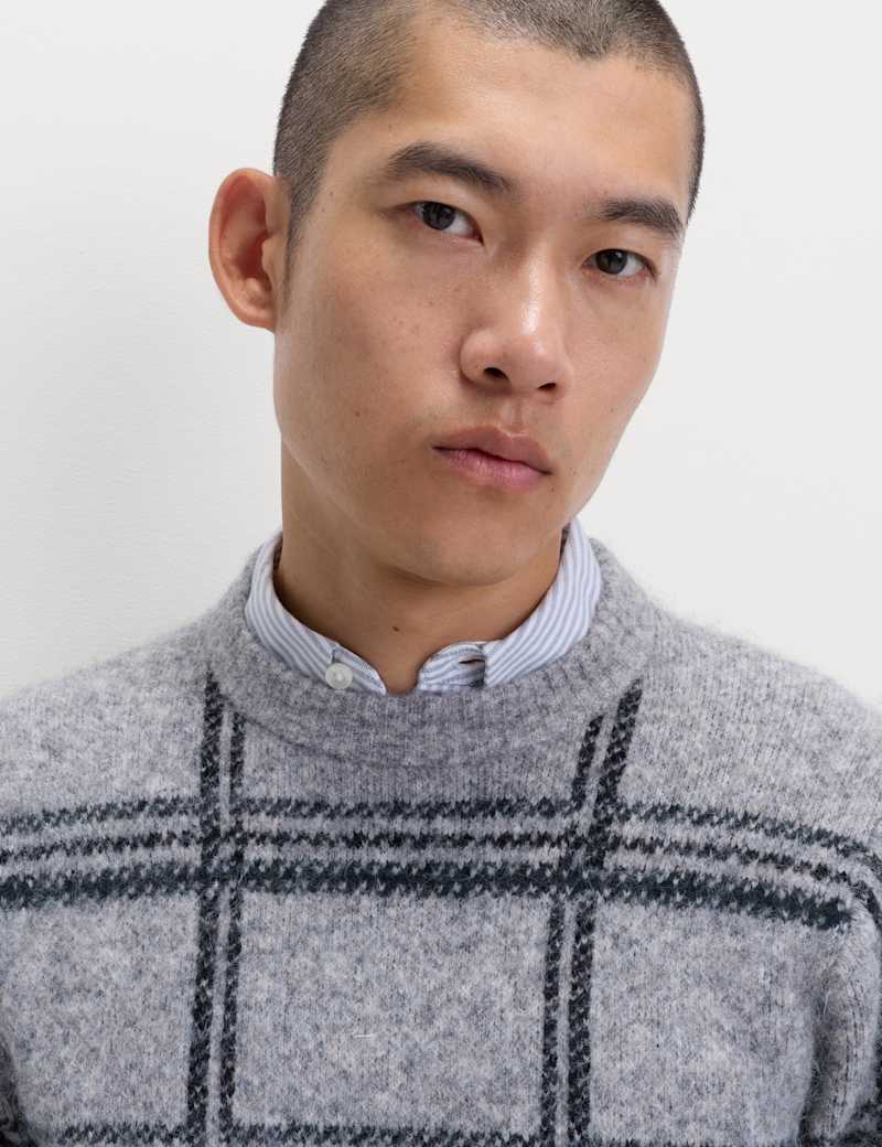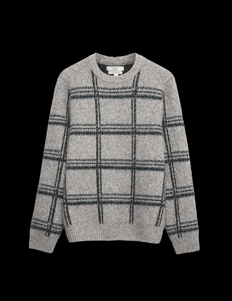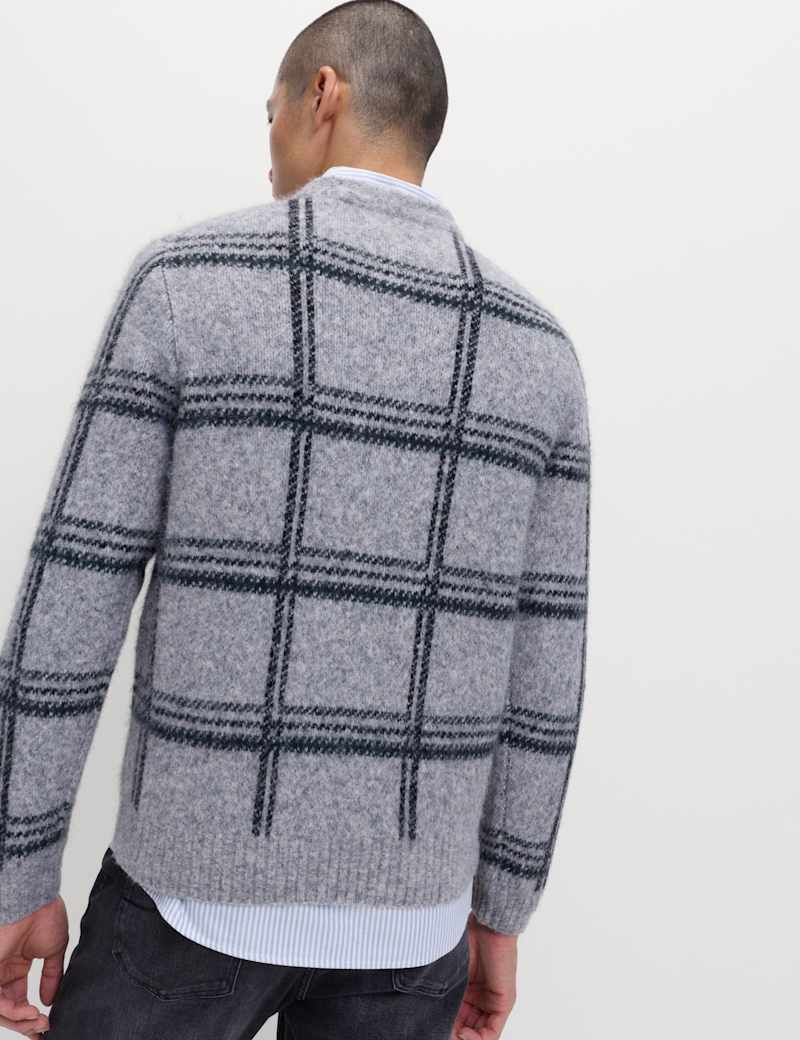 With its enlarged check pattern, this jumper will make a stylish addition to your casual wardrobe. It's made in a regular fit with a crew neck. The hazy yarn is brushed for a cosy feel and the fabric features added stretch for comfort.
