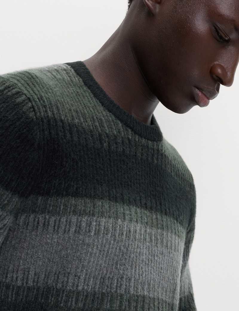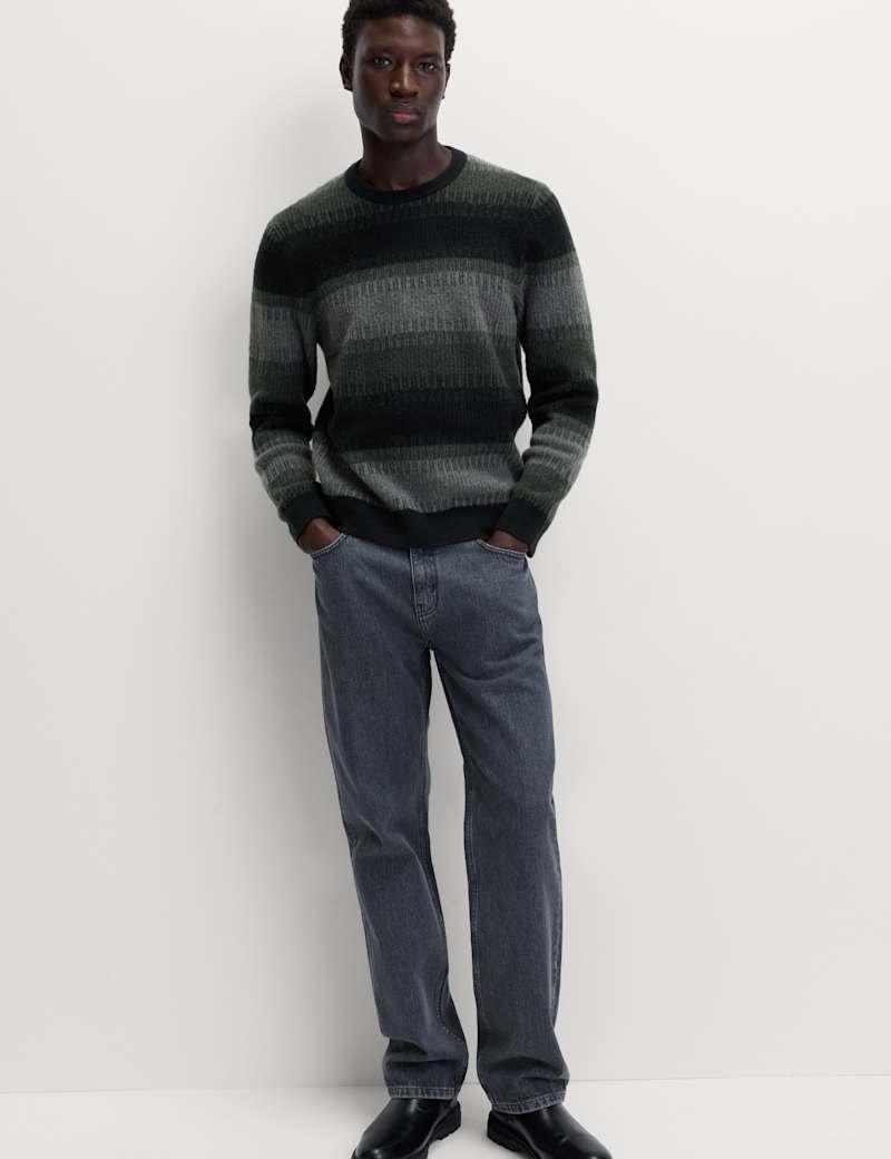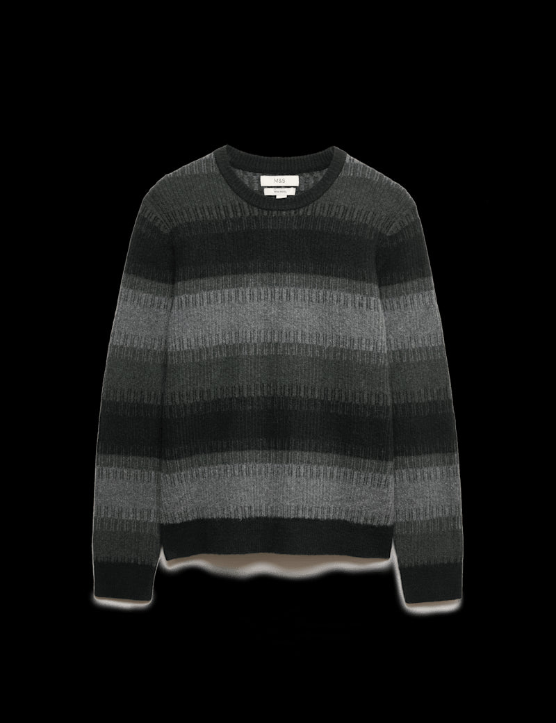With its bold striped pattern, this crew neck jumper will make a distinctive addition to your knitwear collection. The ribbed hem and cuffs add a neat touch to the long-sleeved design. It's made from Supersoft yarn with wool for a cosy feel.