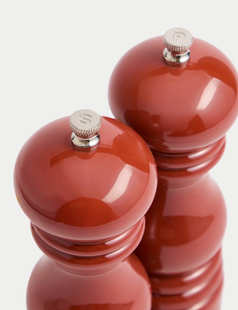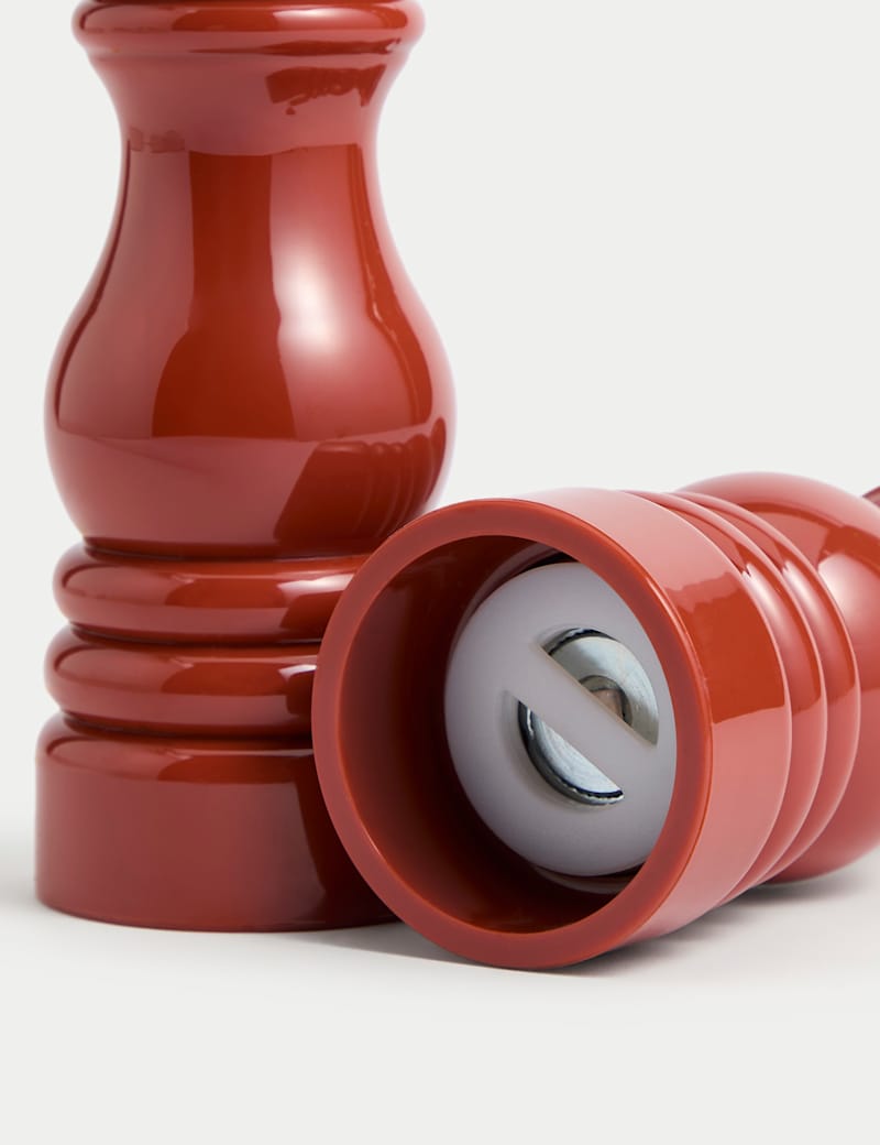 These salt and pepper mills will add a touch of classic style to your kitchen. They have a traditional turned design with a smooth gloss finish for an elegant touch.