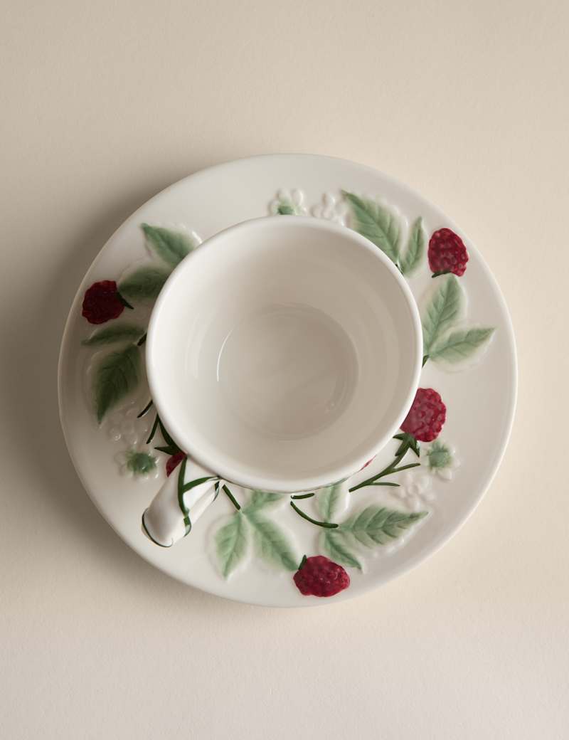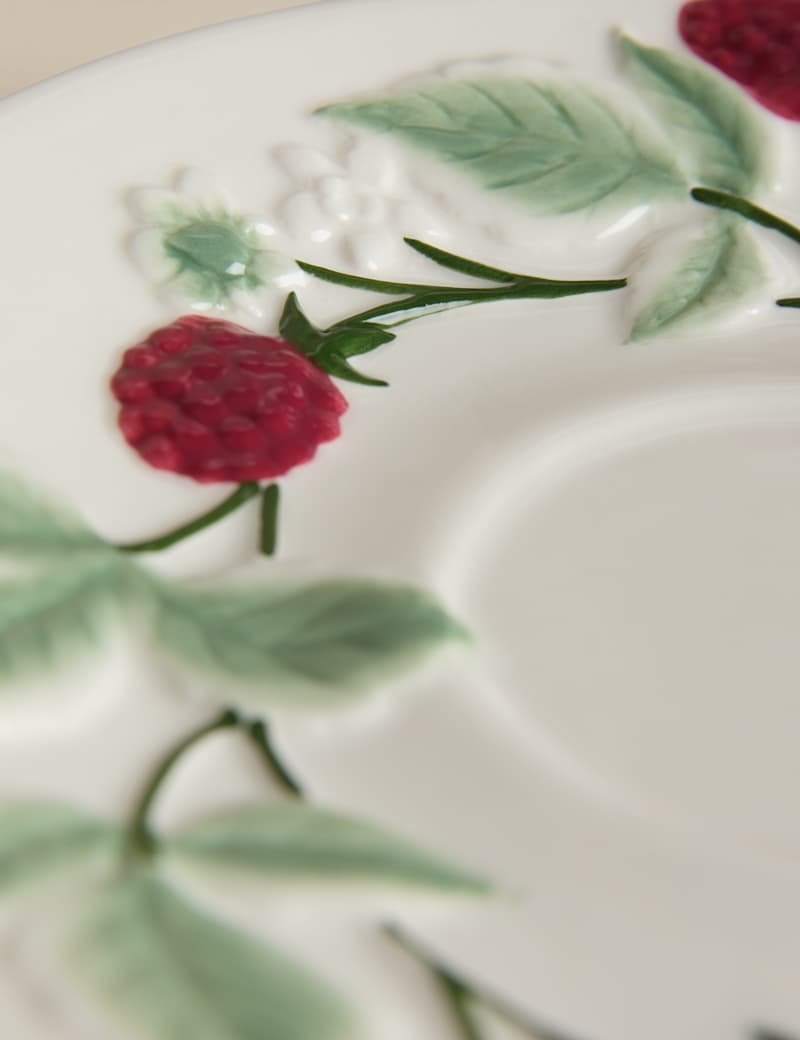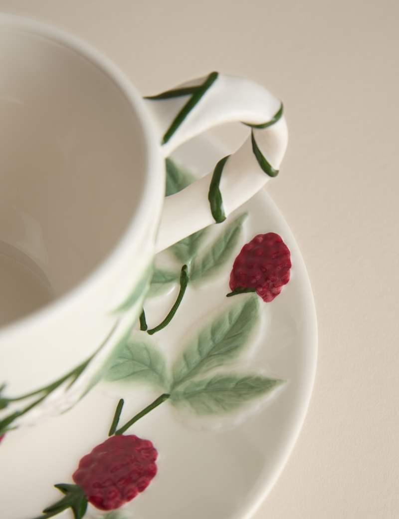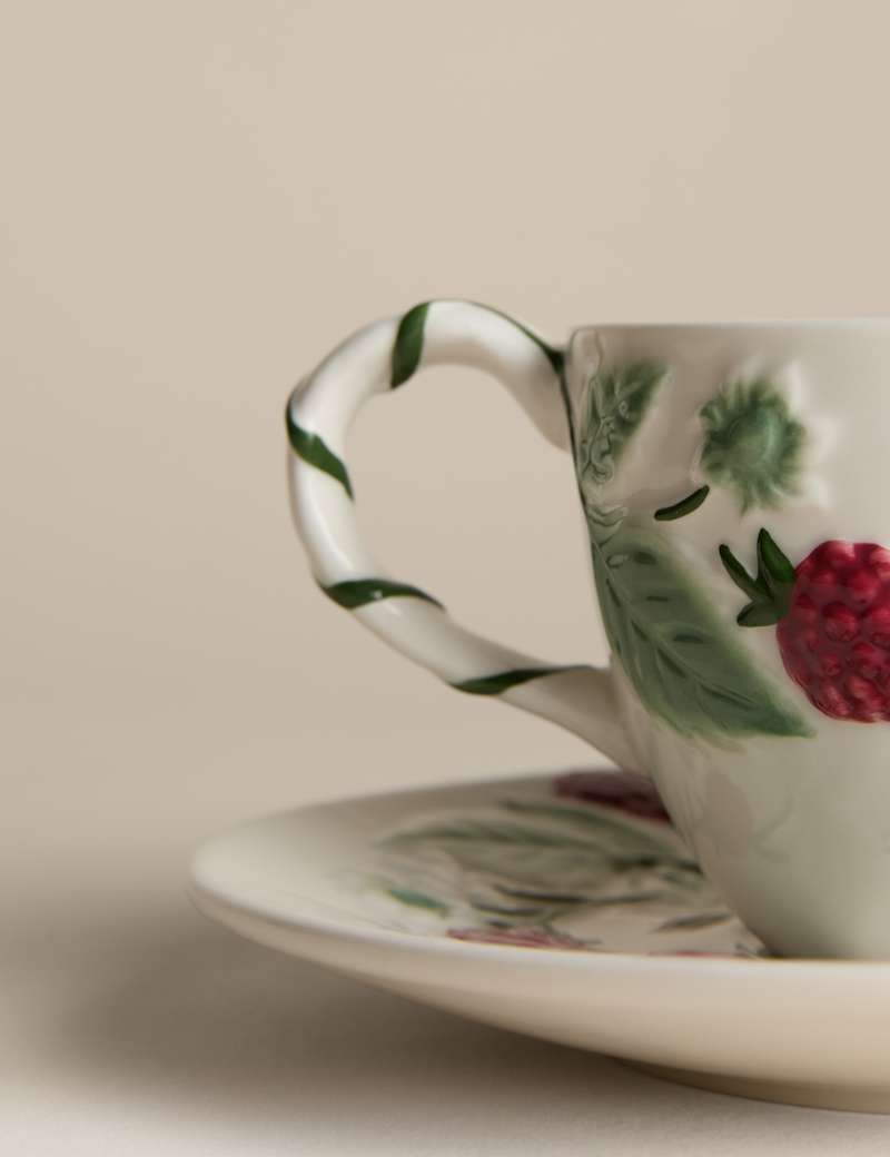 Bring traditional charm to afternoon tea with this cup and saucer set. It's crafted from durable stoneware with a raised bramble and berry design throughout for stylish textural appeal.