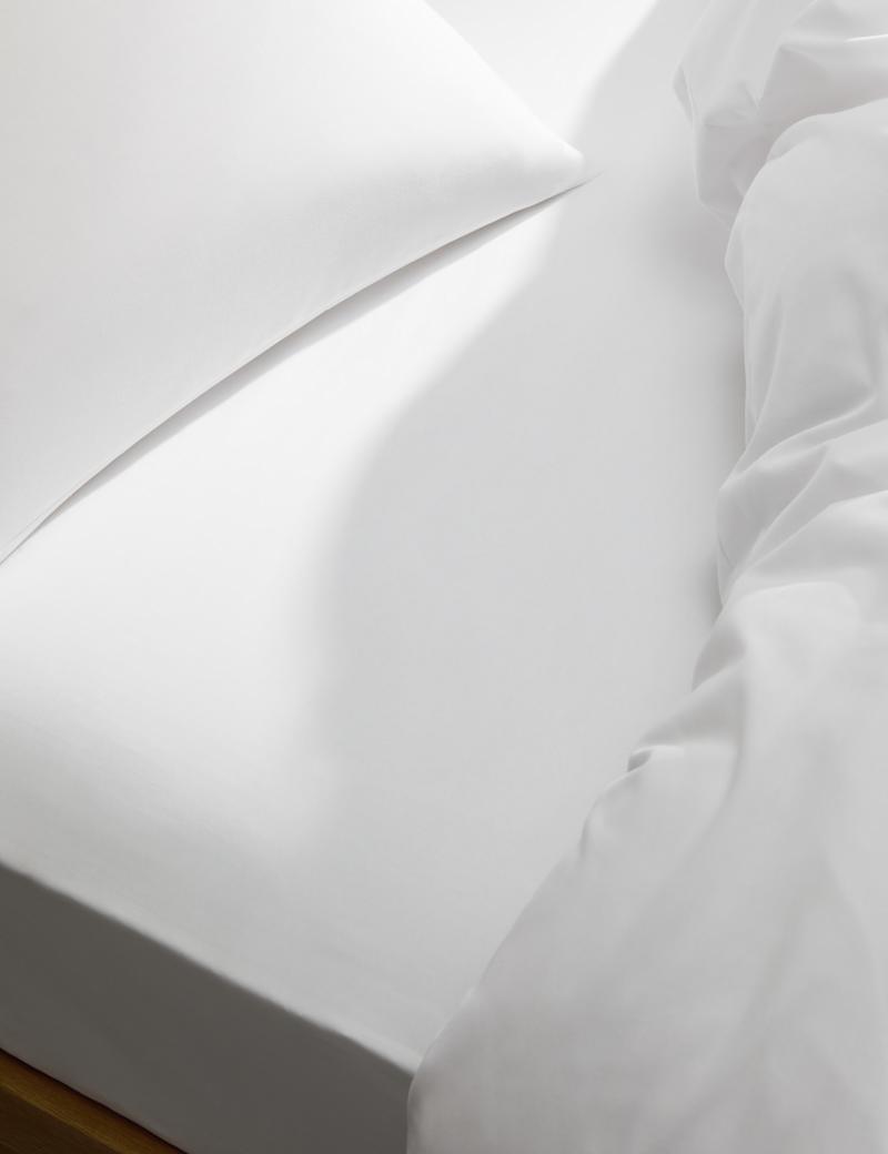 Sleep soundly with this cotton-rich deep fitted sheet which will fit mattresses up to 30cm deep. The elasticated corners help keep it in place, while the woven percale fabric offers a crisp feel. Our Stay New™ technology provides an easy iron finish and long-lasting wear.