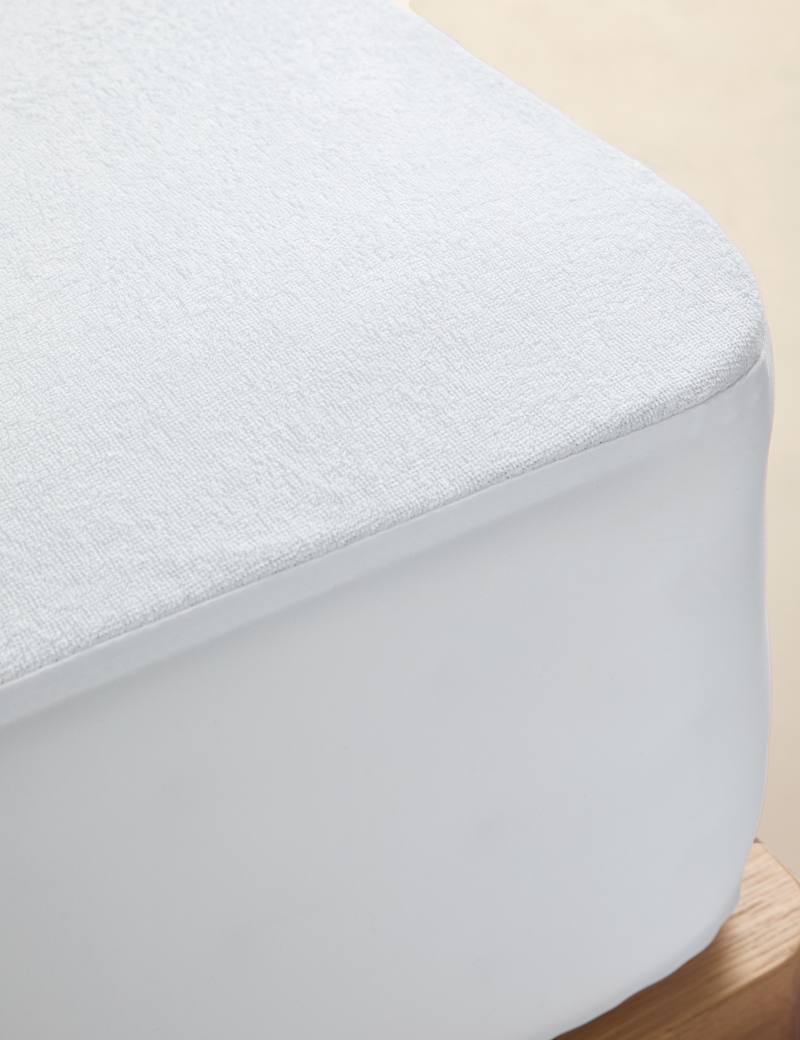 Keep your mattress clean and dry with this comfy, cotton-rich mattress protector. Its soft terry finish provides a breathable layer of plushness, while the waterproof back keeps your mattress safe from spills and accidents. Fits mattresses up to 30cm deep.