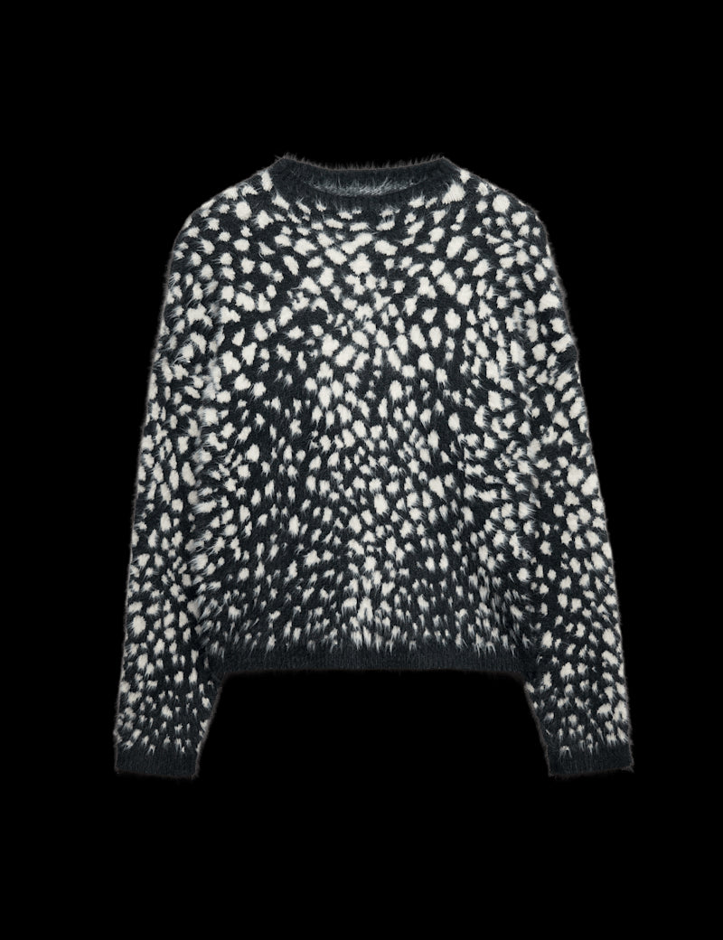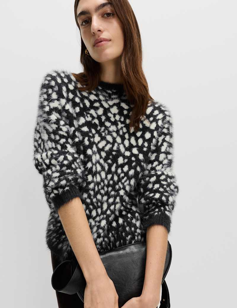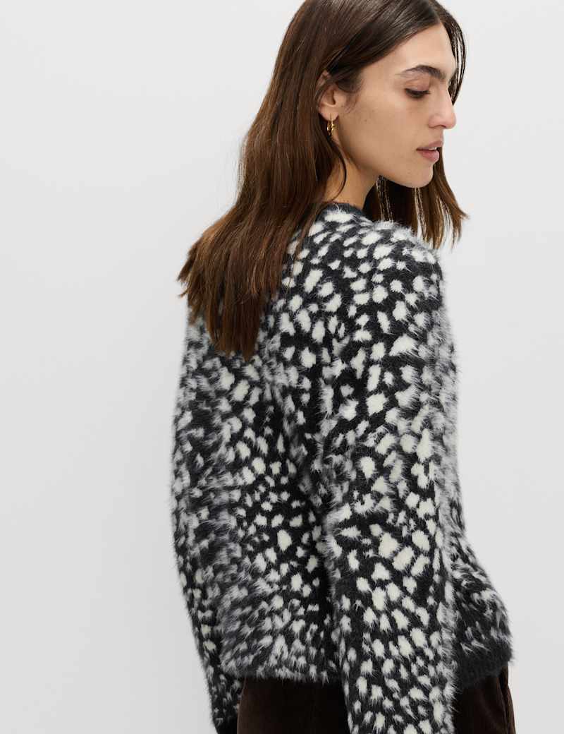 Add a statement piece to your cold-weather wardrobe with this animal print jumper. It's designed in a relaxed fit, with a crew neckline and long sleeves. The fluffy texture makes it feel exceptionally cosy, while slim ribbed trims on the neck, cuffs and hem add a neat finish.