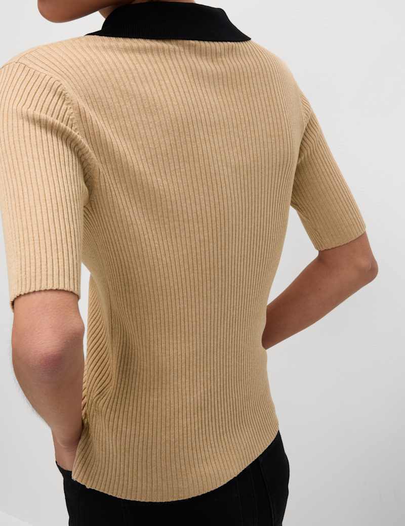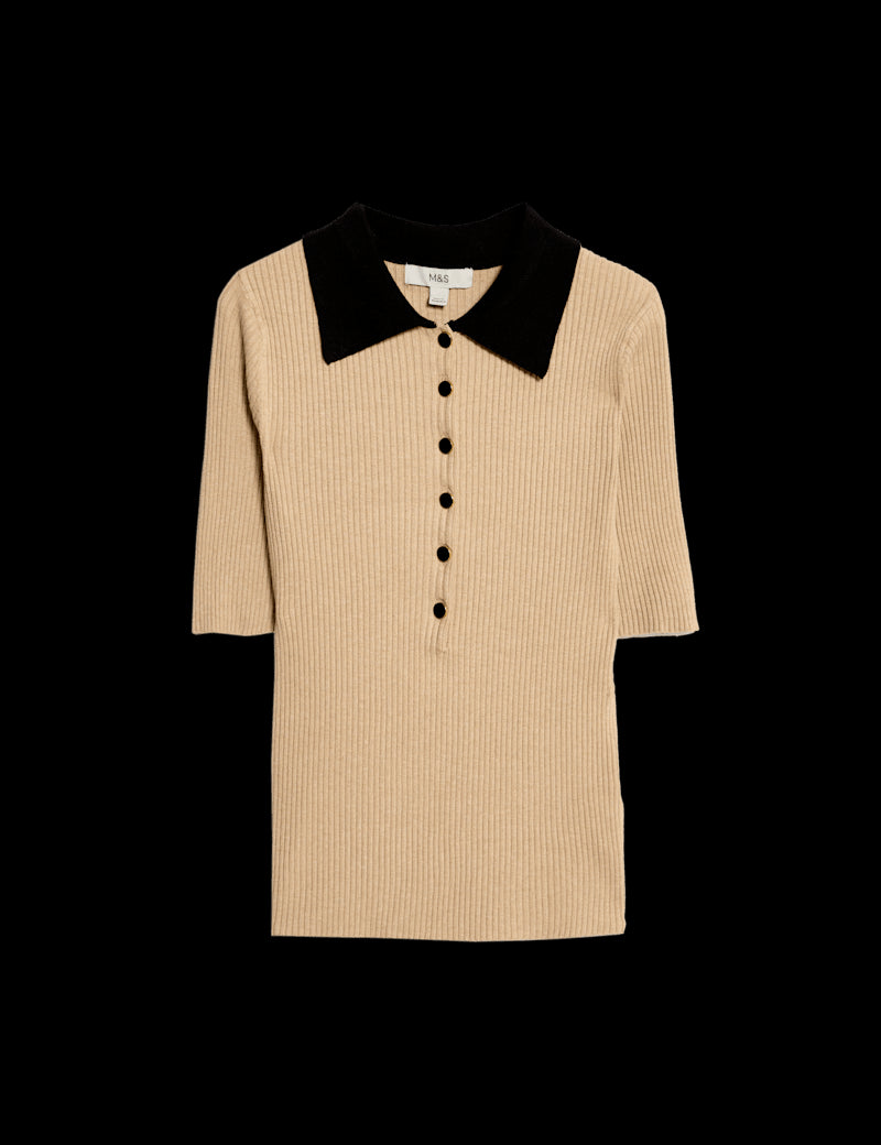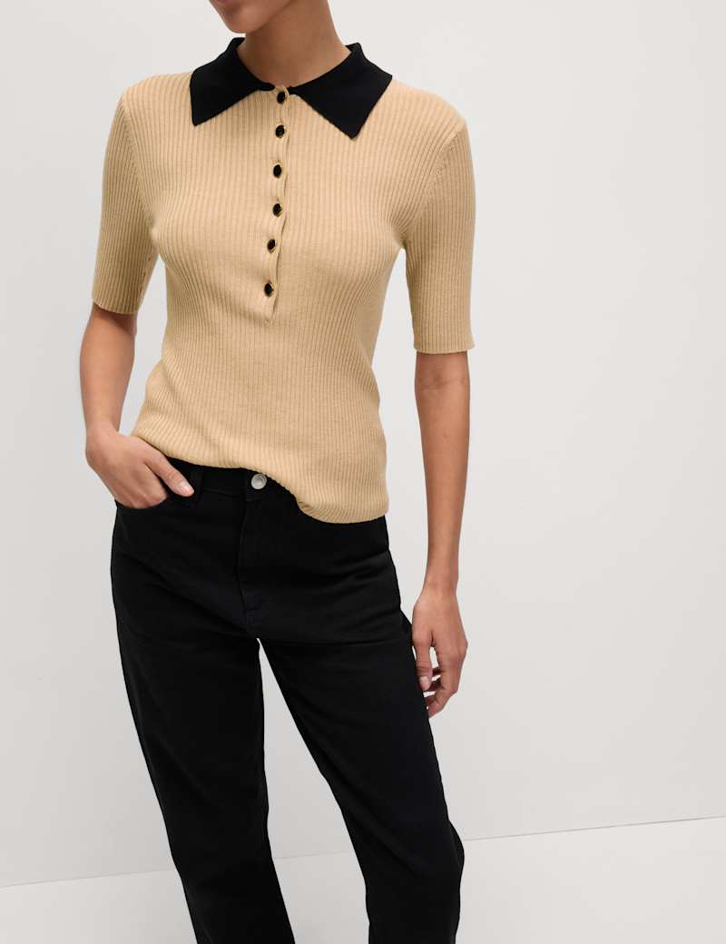 Our Soft Touch knitted top is a versatile and comfortable piece for your wardrobe. It's designed in a flattering slim fit, with a timeless collared neckline in contrast yarn. The ribbed texture adds extra interest, while the button placket is a neat finishing touch.