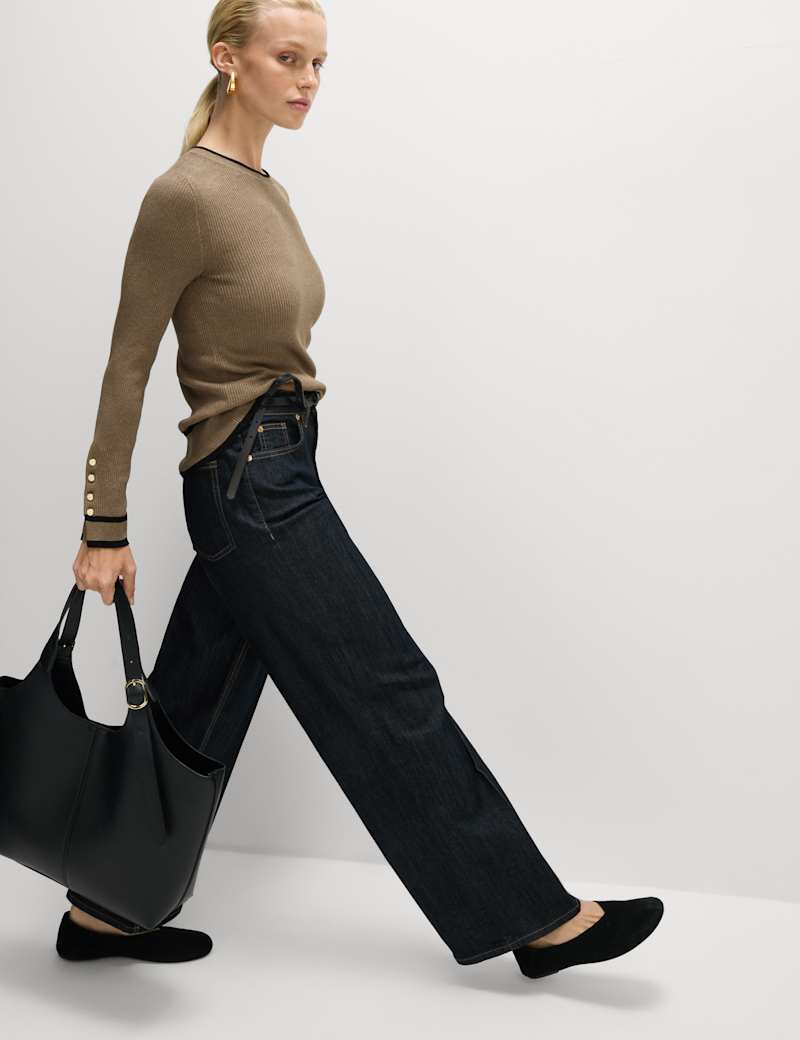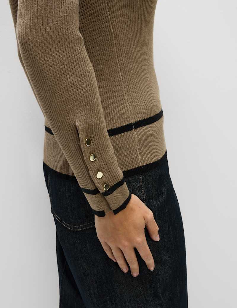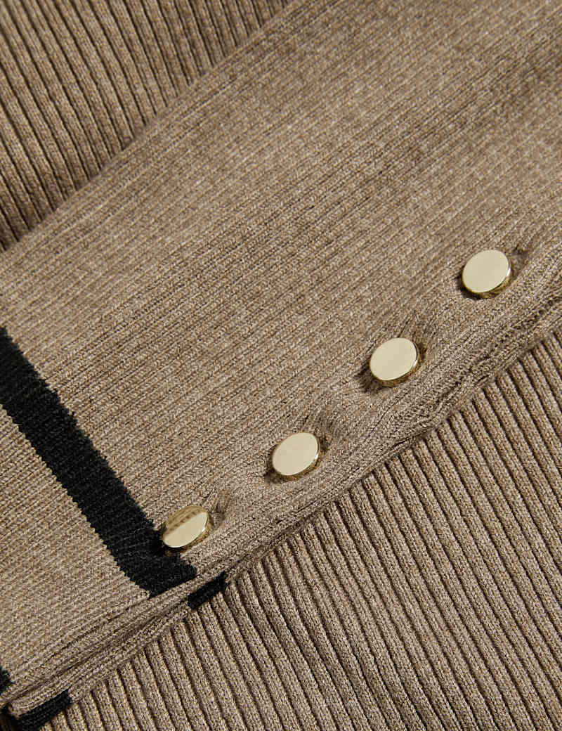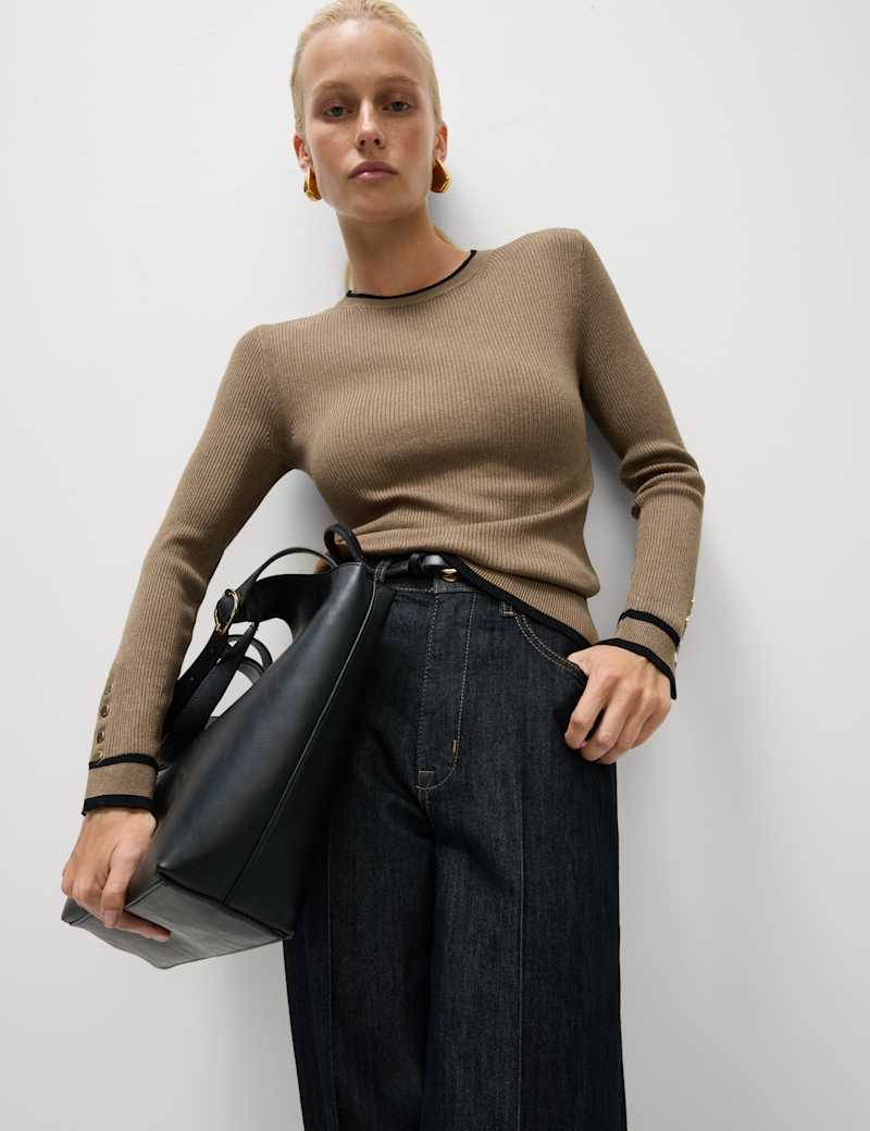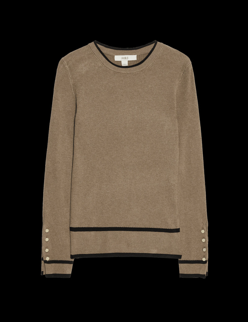 This ribbed jumper is a smart-casual piece for your wardrobe. It's designed in a flattering slim fit, with a smart crew neck and long sleeves. Classic tipping along trims adds eye-catching contrast, along with gold-tone button detailing on the cuffs.
