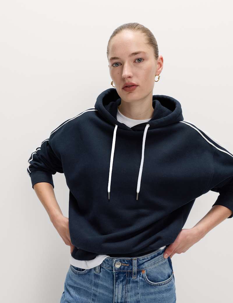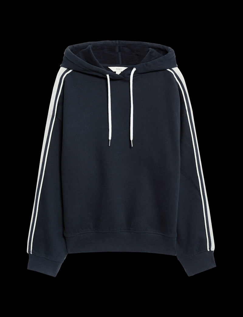 This pure cotton hoodie is a comfy choice for laid-back days. Easy regular fit, with a cosy drawstring hood. Featuring side stripes on the long sleeves for a sporty finish. M&S Collection: easy-to-wear wardrobe staples that combine classic and contemporary styles.
