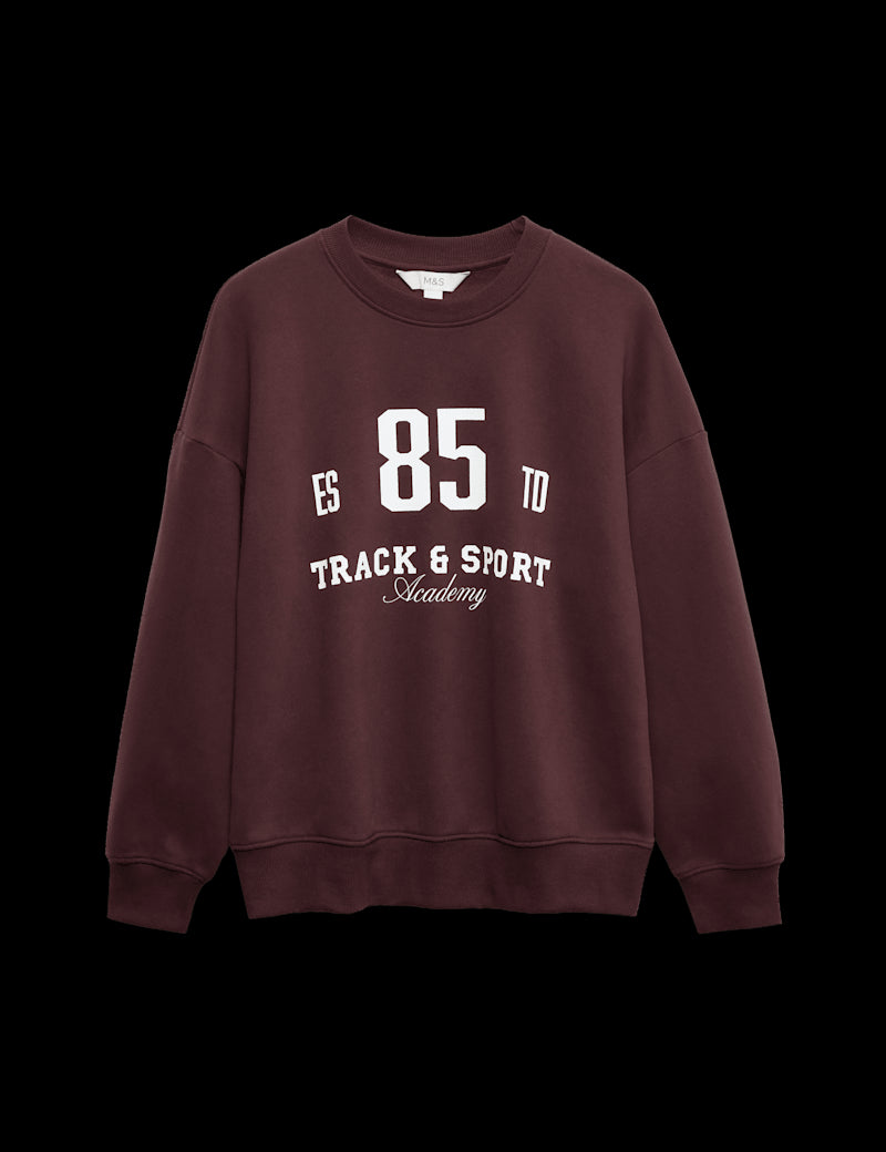 Cotton Rich Slogan Crew Neck Sweat-shirt