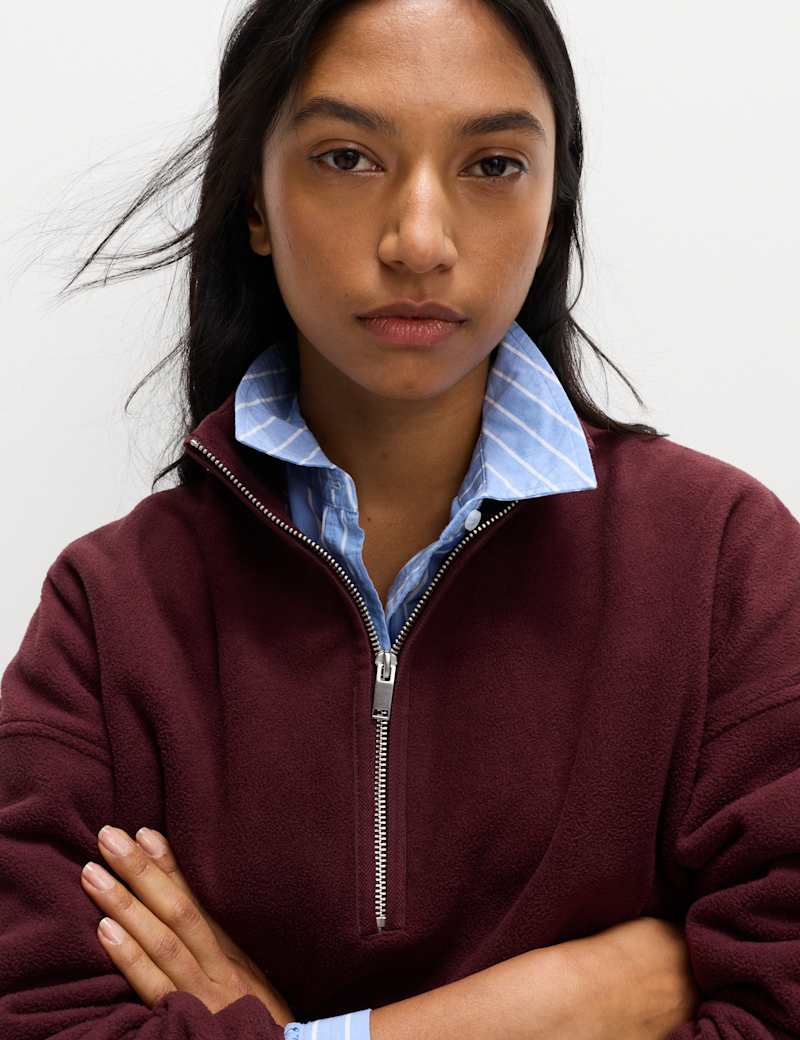 This long-sleeved fleecy sweatshirt is a cosy addition to your casual wardrobe. Regular fit, with a high neck and a half-zip fastening for a sporty look. Dropped shoulders add to the laid-back feel.M&S Collection: easy-to-wear wardrobe staples that combine classic and contemporary styles.