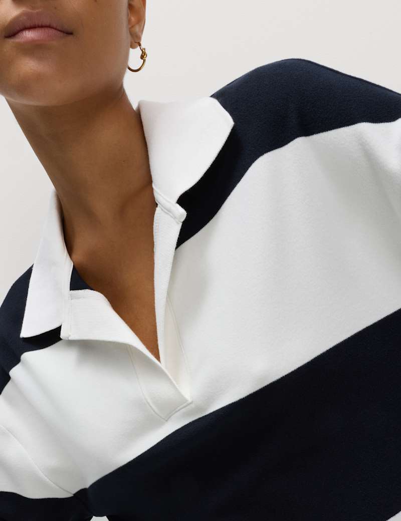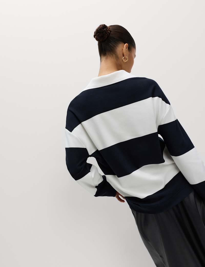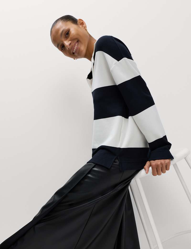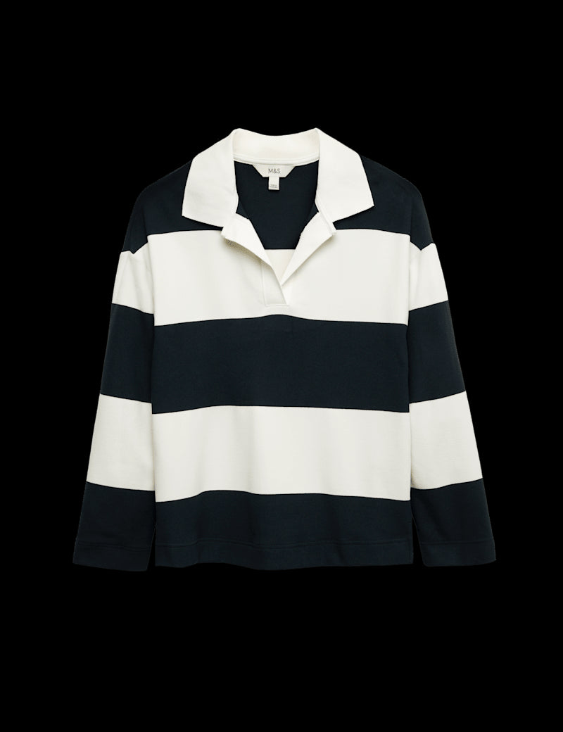 This long-sleeved rugby top features bold stripes for a sporty feel. Regular fit, with added stretch for comfort. Collared neck and an open placket offer a smart touch.