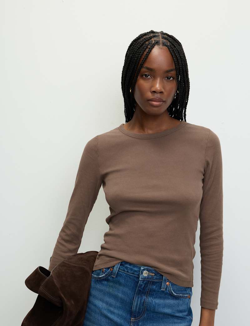 This cotton-rich top is garment-dyed for a lived-in look. Flattering slim fit, with added stretch for comfort. Featuring a ribbed texture, a timeless crew neckline and long sleeves.