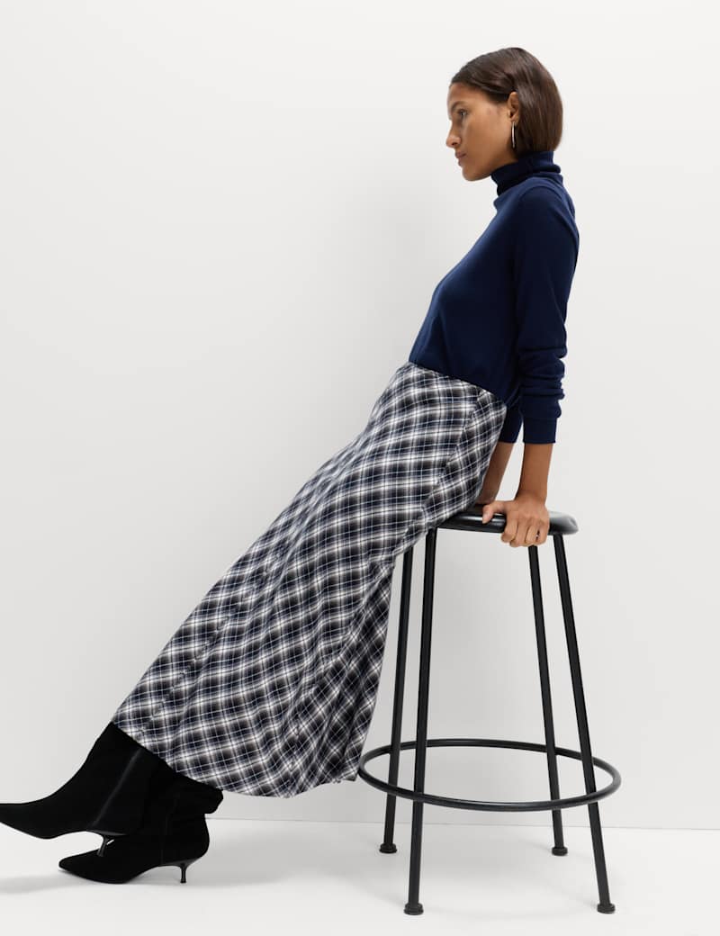 Pure Cotton Checked Midi A-Line Circle Skirt