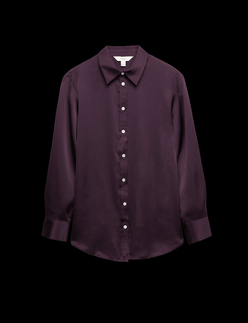 Satin Collared Button Through Shirt