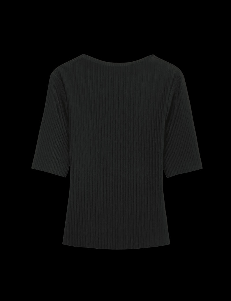 It's all about effortless style and luxe texture with this three-quarter sleeve top. It's designed in an easy, regular fit with added stretch for comfort. This versatile wardrobe staple features a tactile all-over ribbed finish and a round neckline for a neat look.