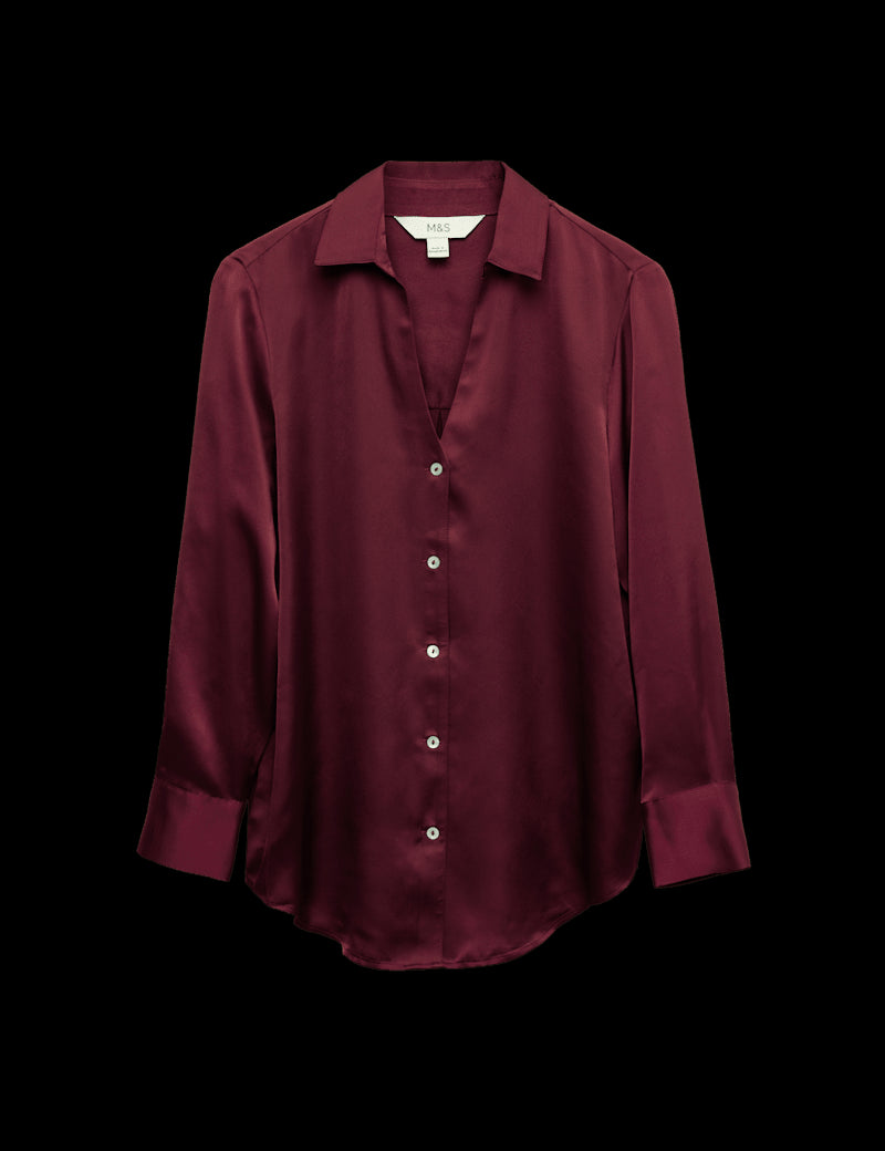 Satin Collared V-Neck Button Through Shirt