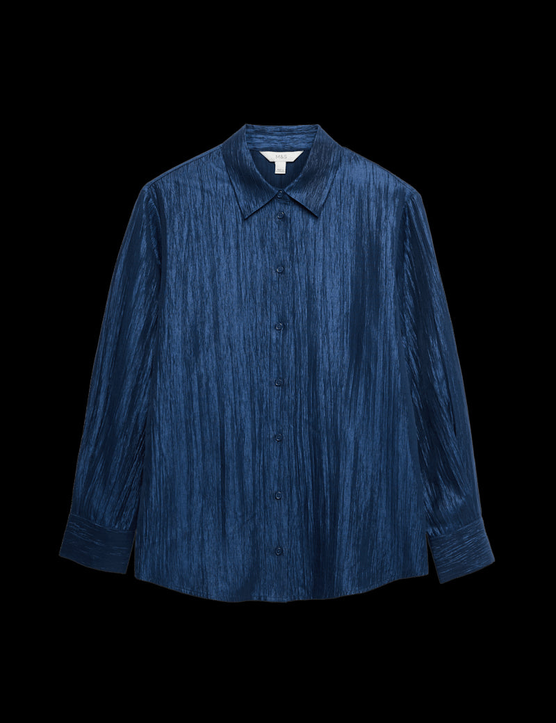 This shirt is made from lyocell-rich fabric with a crinkle texture for a lightweight feel. Cut in a regular fit, with a smart collared neckline. The long sleeves finish with neat cuffs and the front fastens with a row of matching buttons.