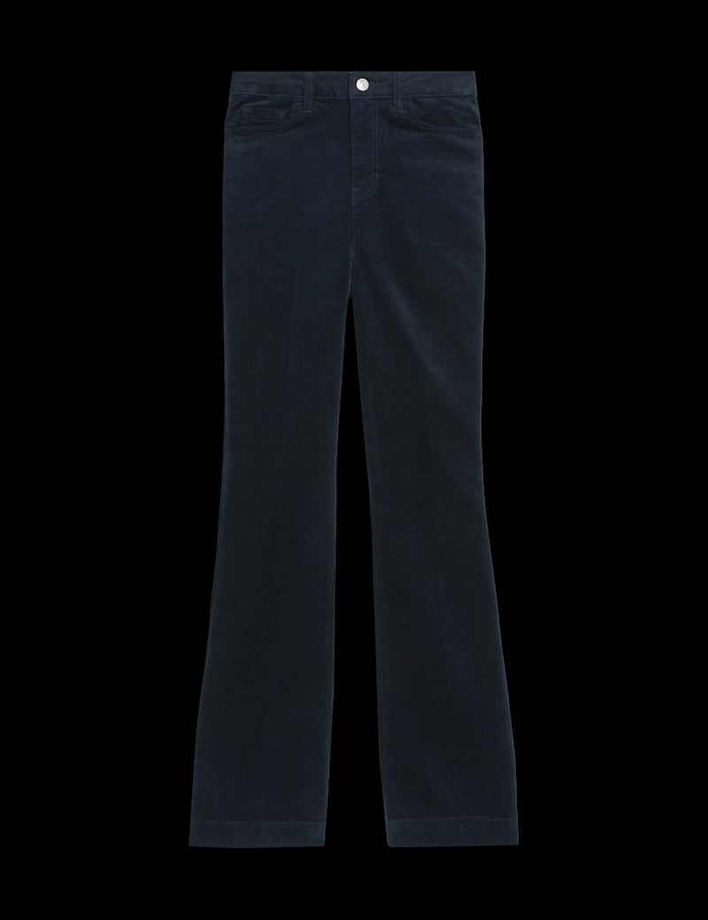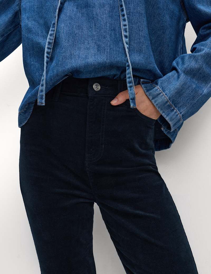 Create a flattering look in these cotton-rich corduroy trousers. They're designed with a slim fit that flares out slightly from the knee. The high waistband fastens with a button and zip, and features belt loops for styling options. Pockets add a practical touch.