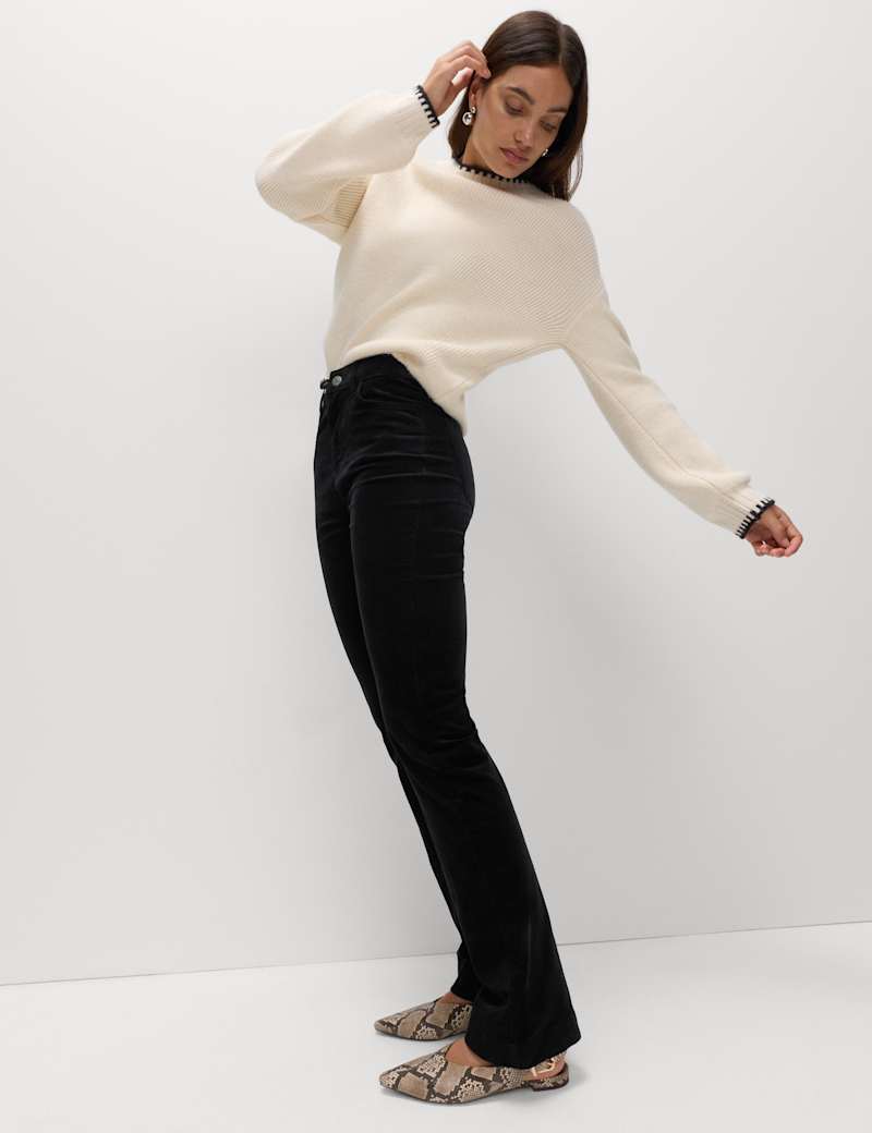 Create a flattering look in these cotton-rich corduroy trousers. They're designed with a slim fit that flares out slightly from the knee. The high waistband fastens with a button and zip, and features belt loops for styling options. Pockets add a practical touch.