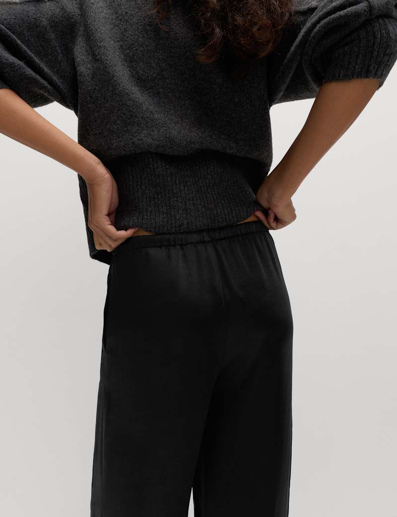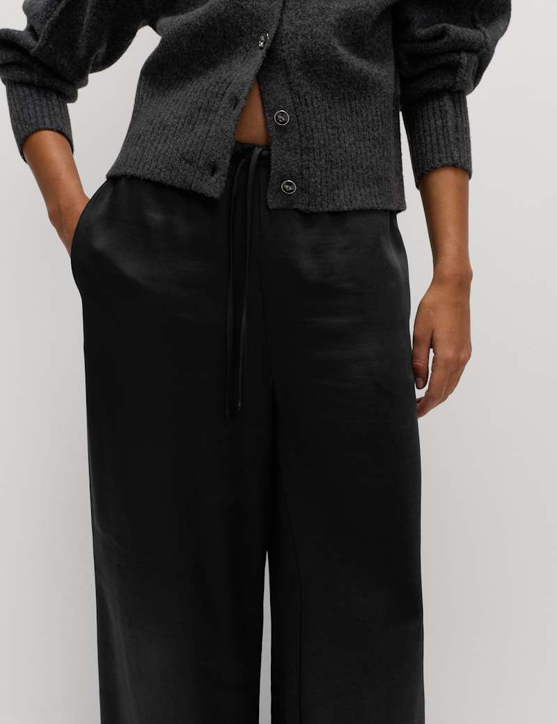 Create effortlessly stylish day-to-evening looks with these satin trousers. Theyre designed in a contemporary wide-leg silhouette with a comfy elasticated waistband. A drawstring fastening ensures a perfect fit.