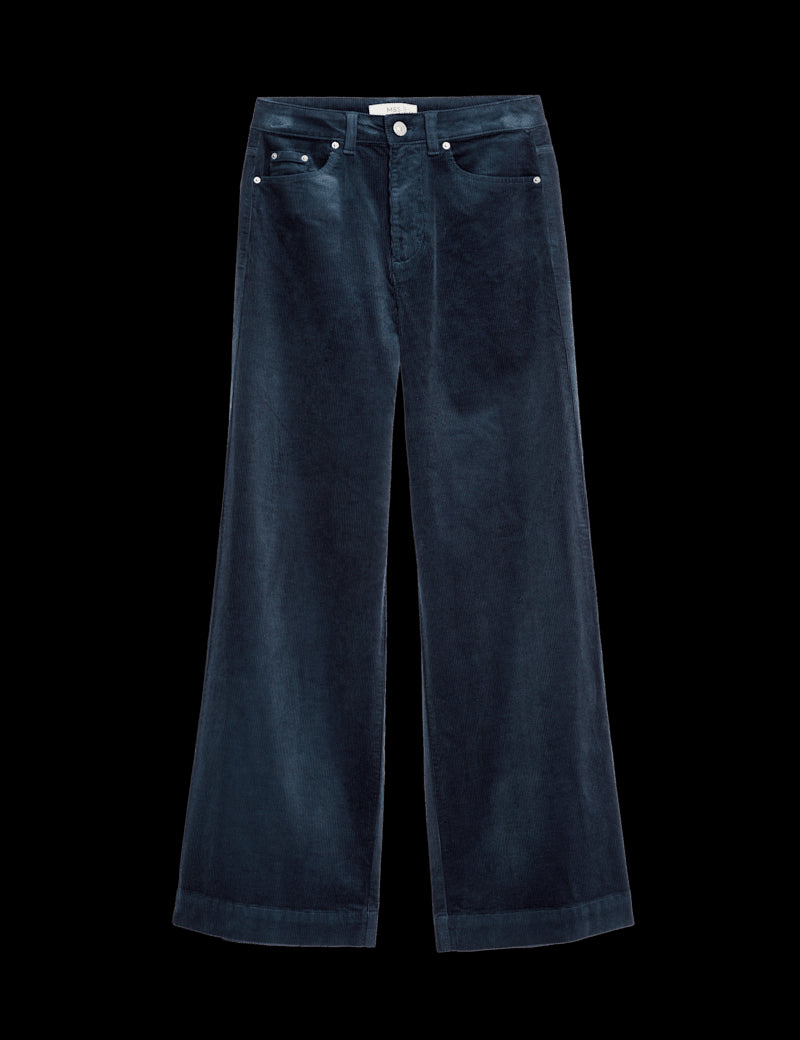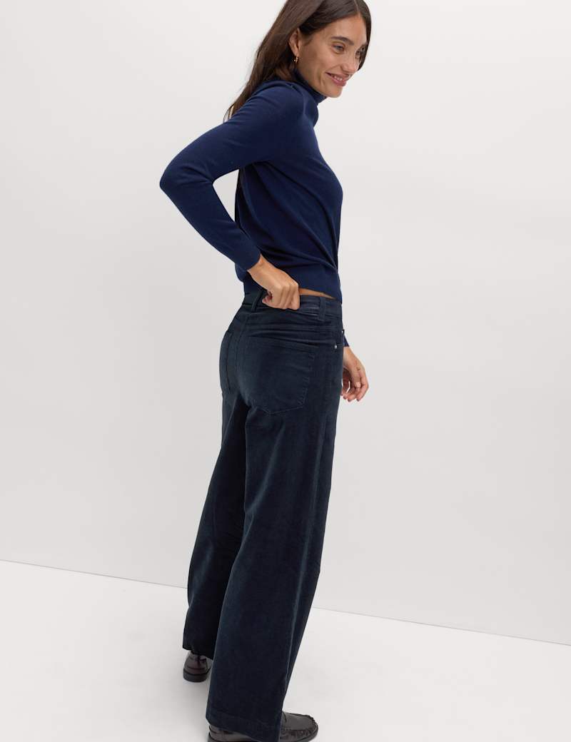 These cotton-rich cords are crafted with added stretch for comfortable wear. High-waisted, wide-leg style, with a button and zip fastening. Belt loops and a five-pocket design complete the look.