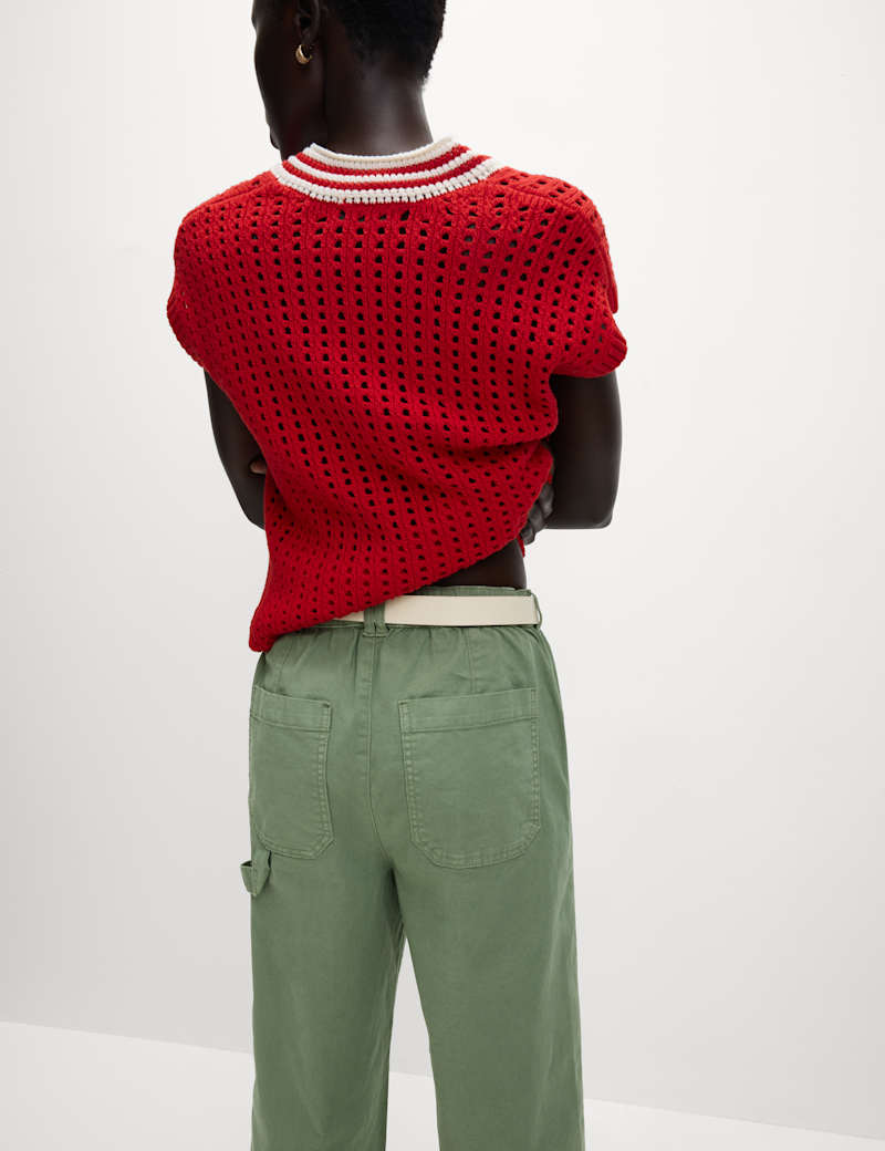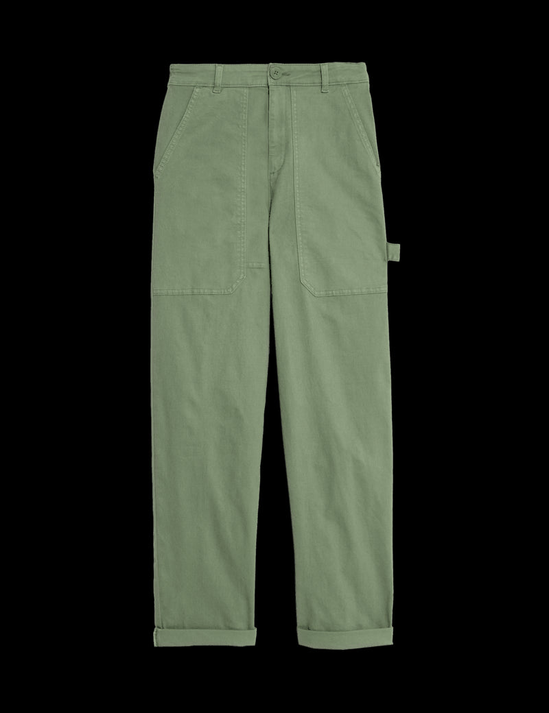 These cotton-rich carpenter trousers are a stylish take on a workwear-inspired design. The straight-leg fit and high-waisted shape give them a flattering silhouette. Added stretch and an elasticated back make them extra comfortable to wear. They're finished with a hook detail on the leg and a traditional button-and-zip fastening. M&S Collection: easy-to-wear wardrobe staples that combine classic and contemporary styles.