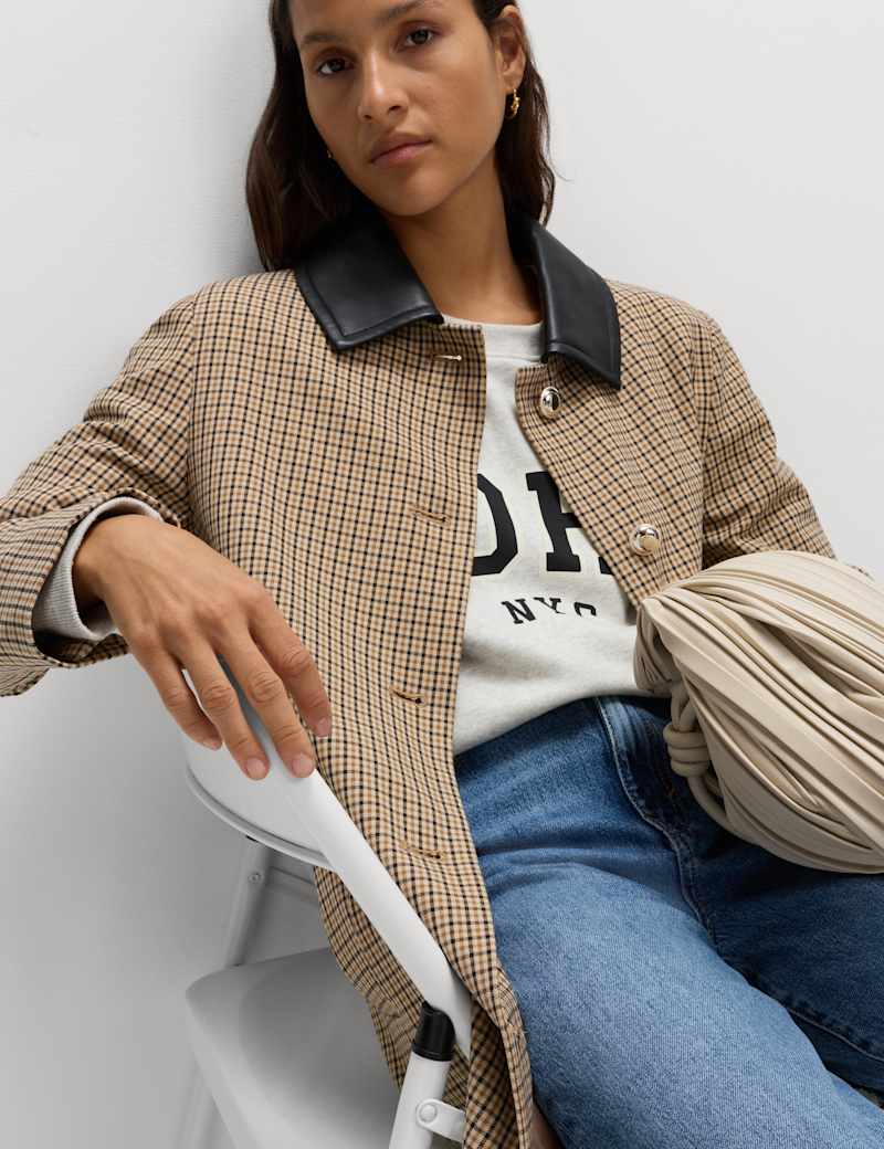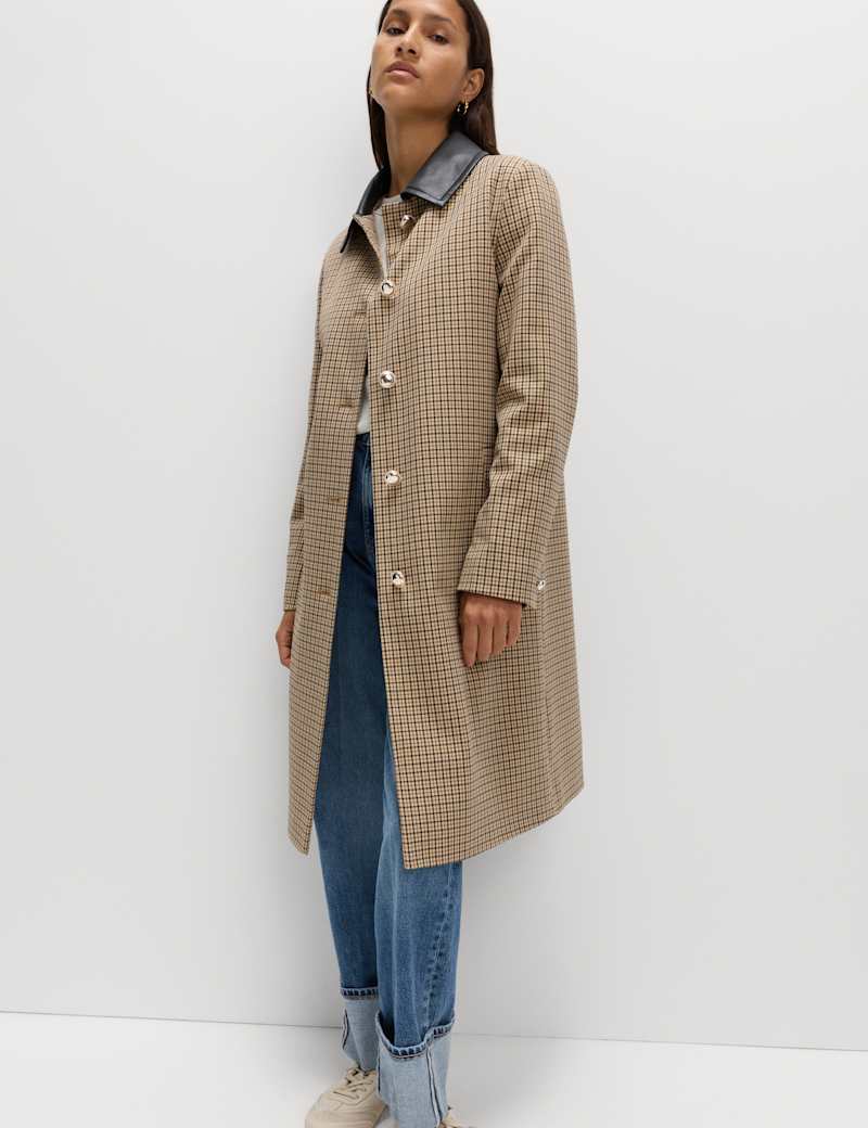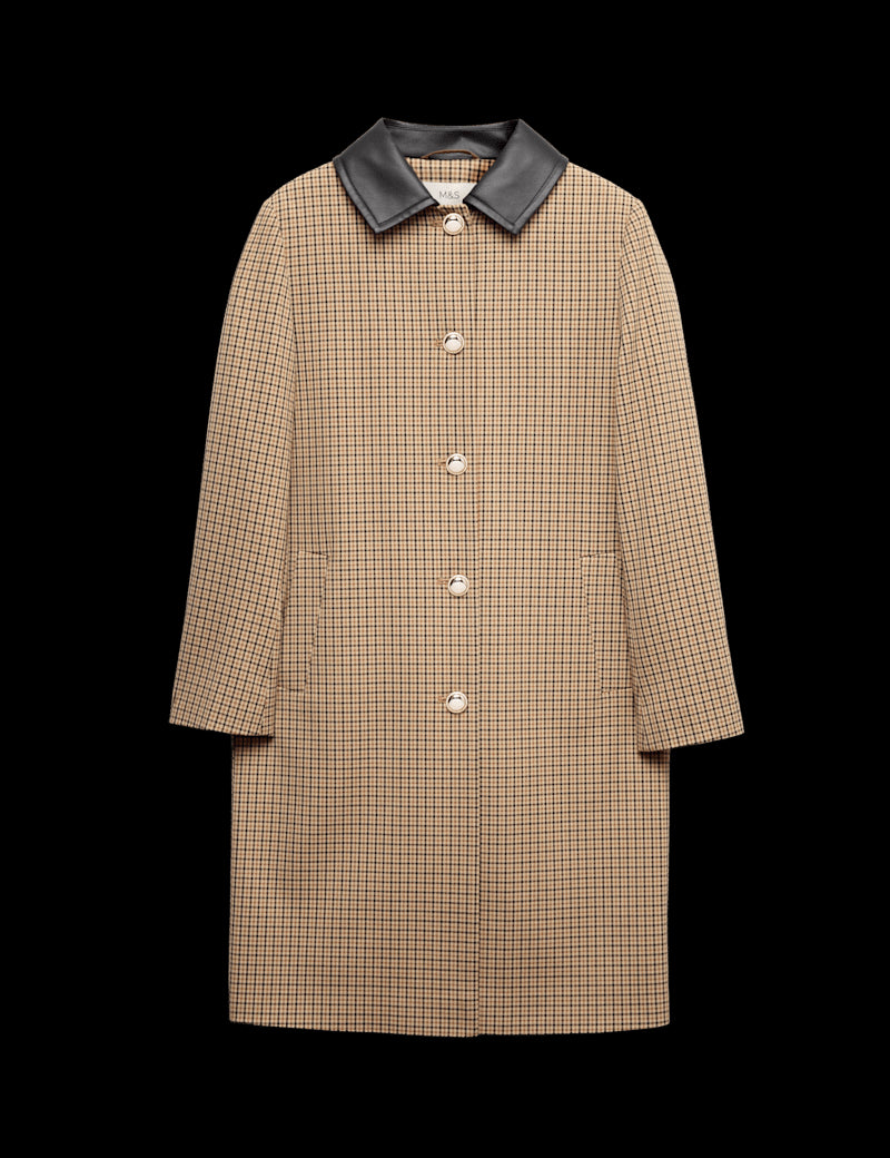 Add a timeless piece to your outerwear wardrobe with this checked car coat. It's cut in a regular fit with added stretch for comfort. The faux leather collar and shiny button fastening provide an authentic look. Pockets are handy for your bits and bobs.