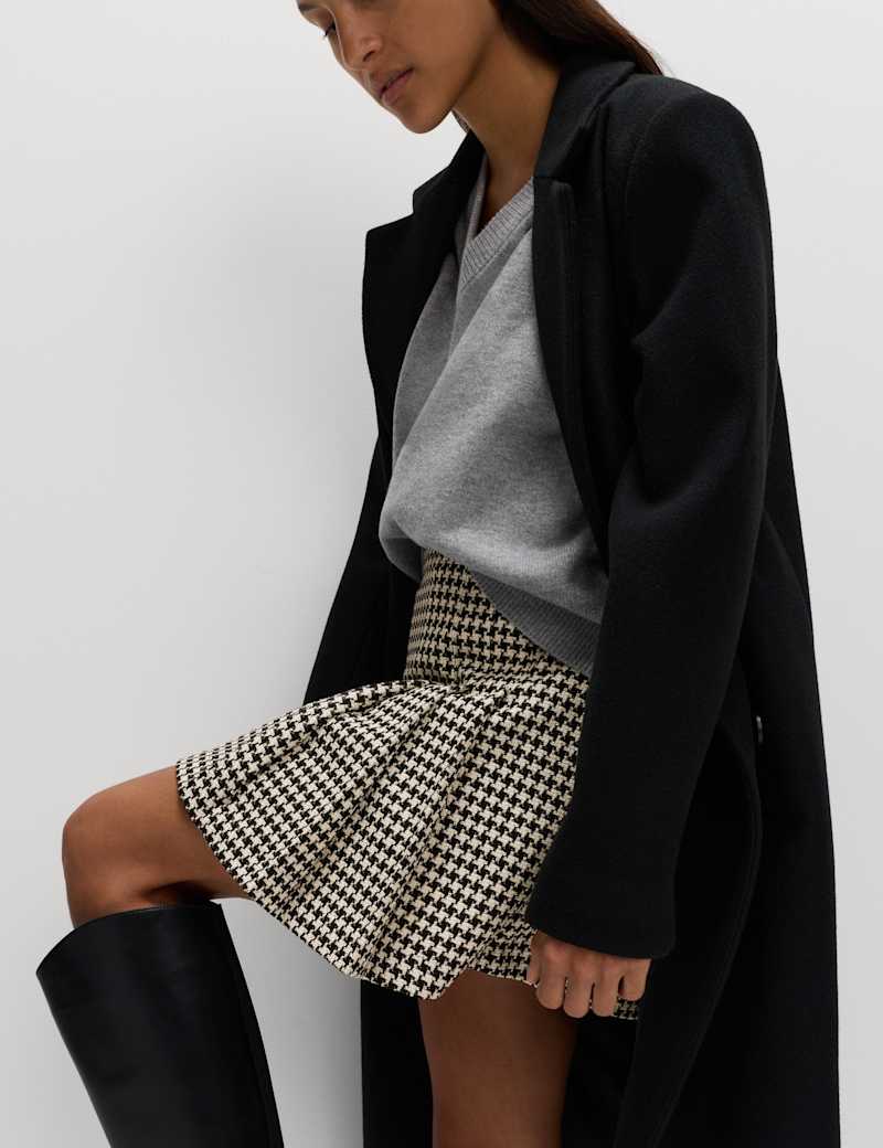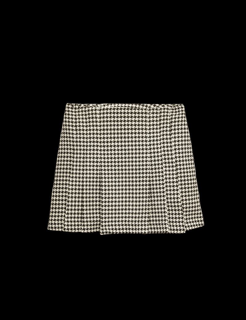 Cotton Rich Dogtooth Tweed Pleated Mini Skirt