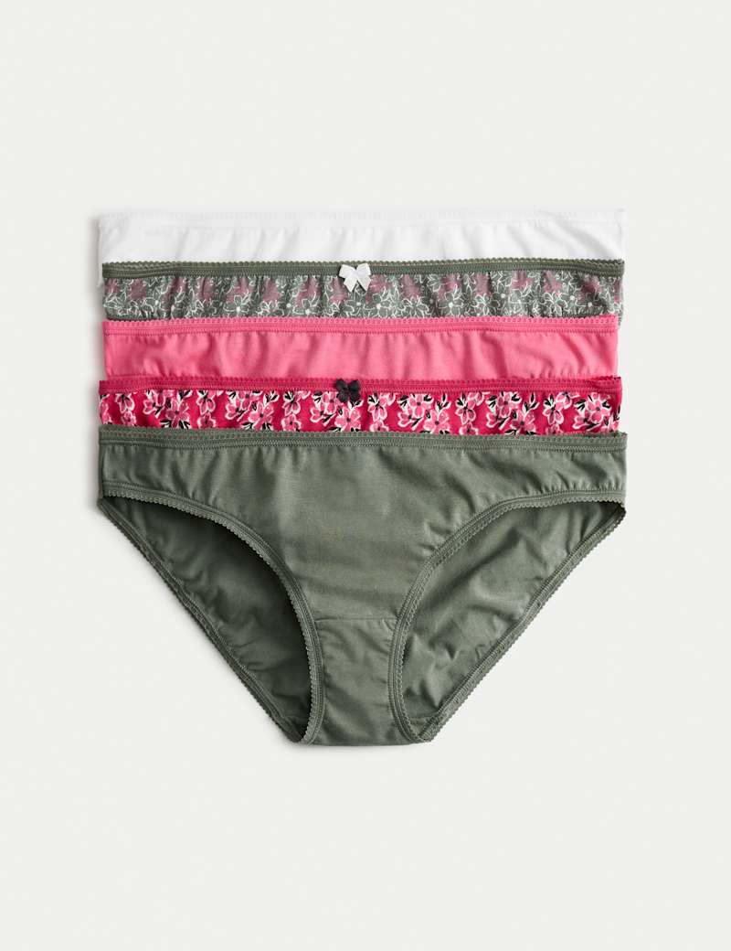 Stock up on daily essentials with these comfy cotton Lycraknickers. Bikini style offers good coverage, with a high waist for a flattering fit. StayNewensures long-lasting colour and softness, wash after wash. Five-pack includes striped, floral and plain designs.