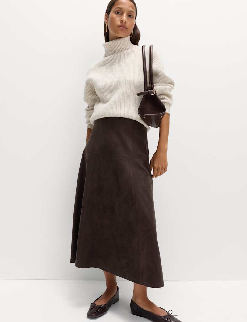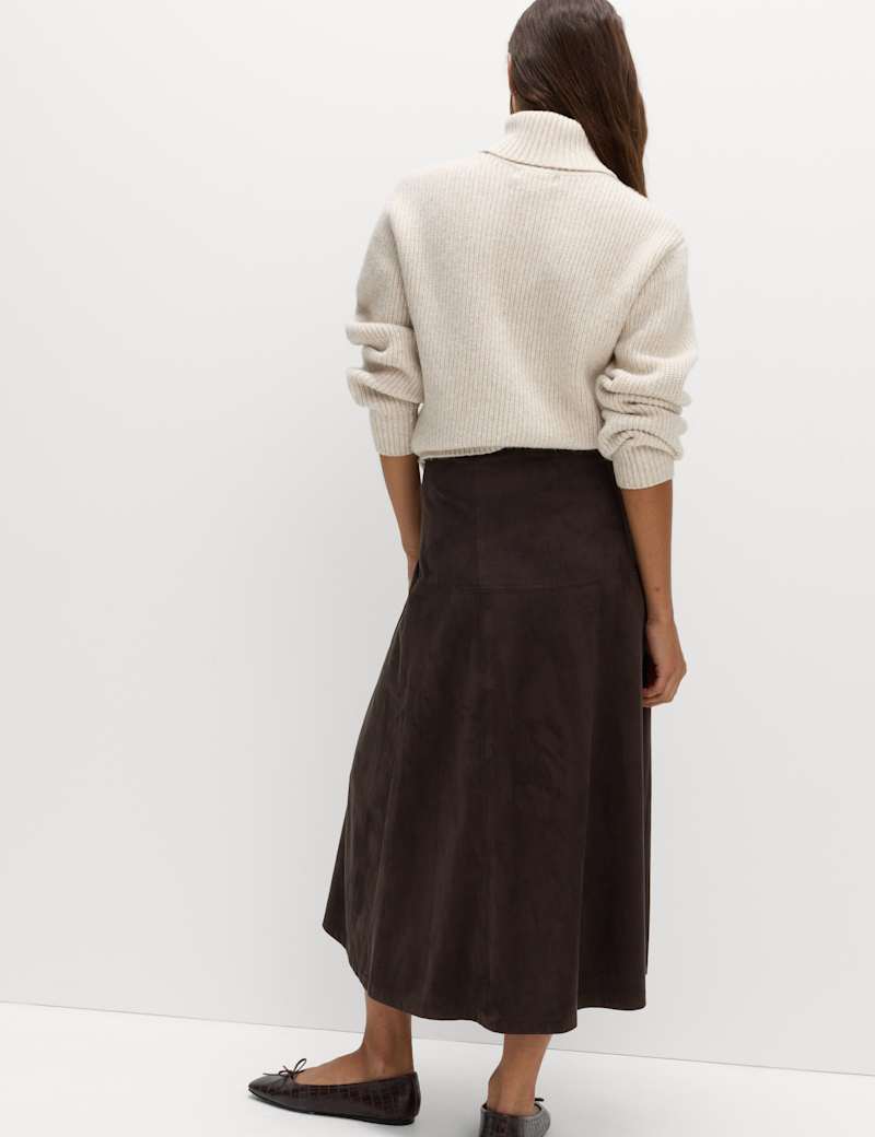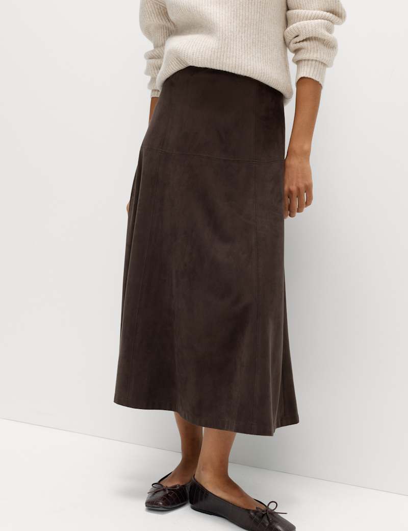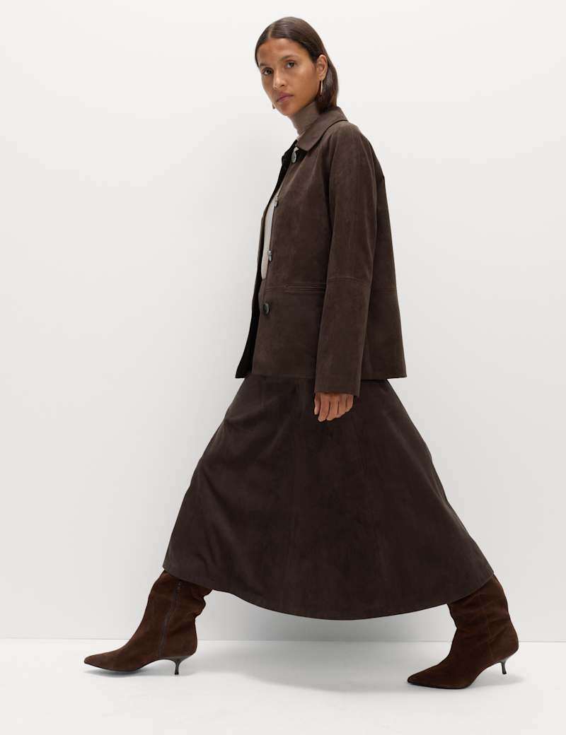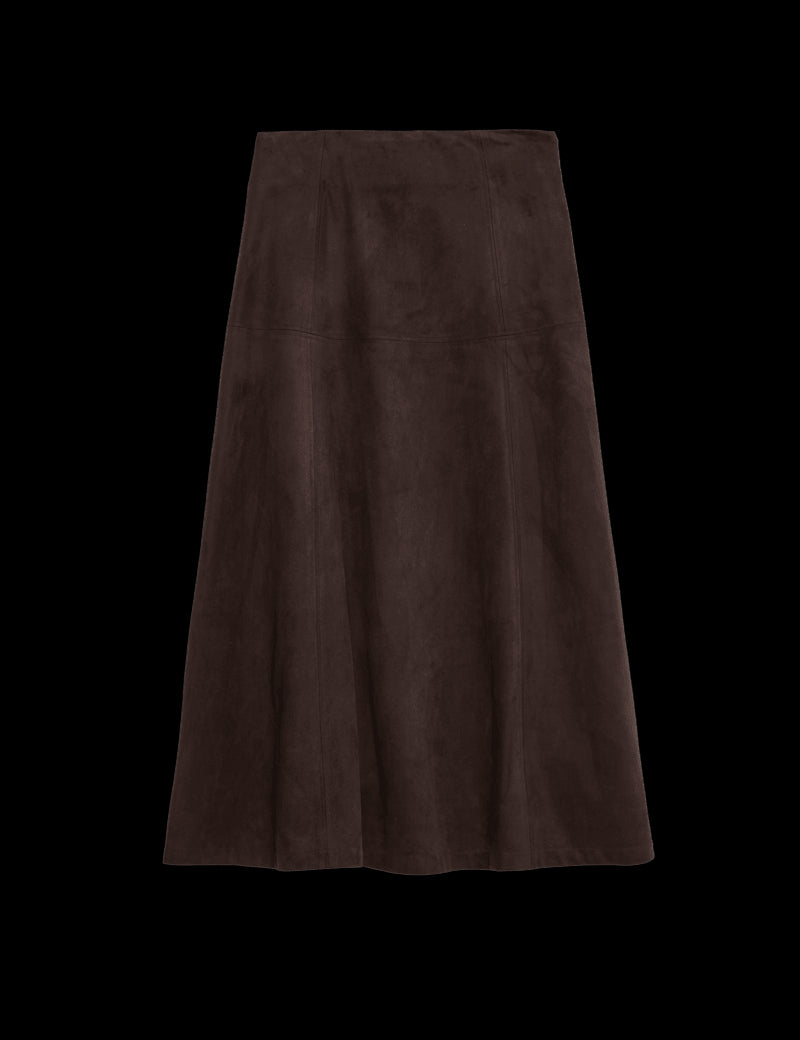 Add a touch of luxury to your wardrobe with this soft suedette skirt. It has a flowing maxi-length hem, a flattering high waist and an elegant A-line shape. The zip fastening is concealed at the back for a streamlined finish.