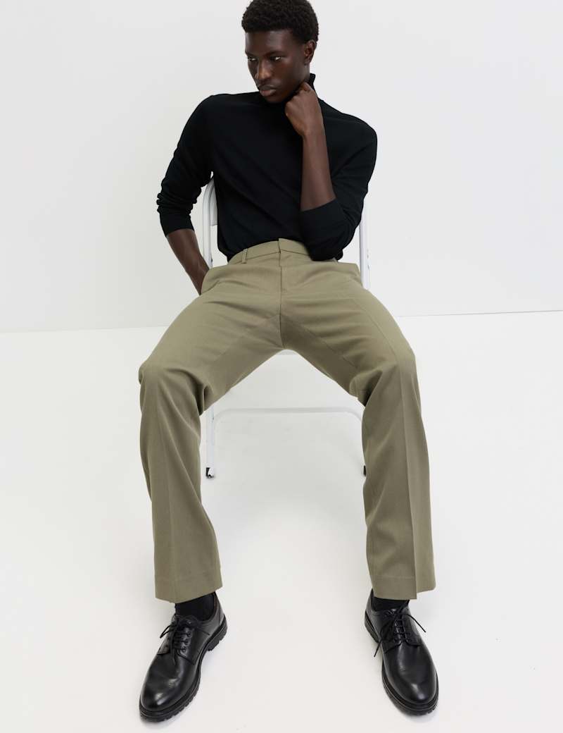 These smart twill trousers deliver style with practical comfort. Cut to a regular fit with a clean flat front, they create a neat silhouette enhanced by the discreet hook bar and zip fastening. The stretchy fabric includes added stretch and a comfortable waistband, ensuring unrestricted movement throughout your day. Kick tape detailing provides durability against scuffing for lasting wear.