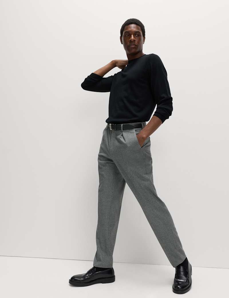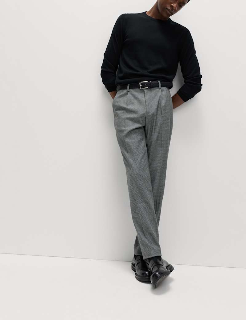 Bring extra flair to your formal look with these puppytooth trousers. They're cut to a neat tailored fit from fabric with a warm handle for a cosy feel. A single pleat at the waist ensures a touch of drape through the leg. Added stretch makes for easy movement.
