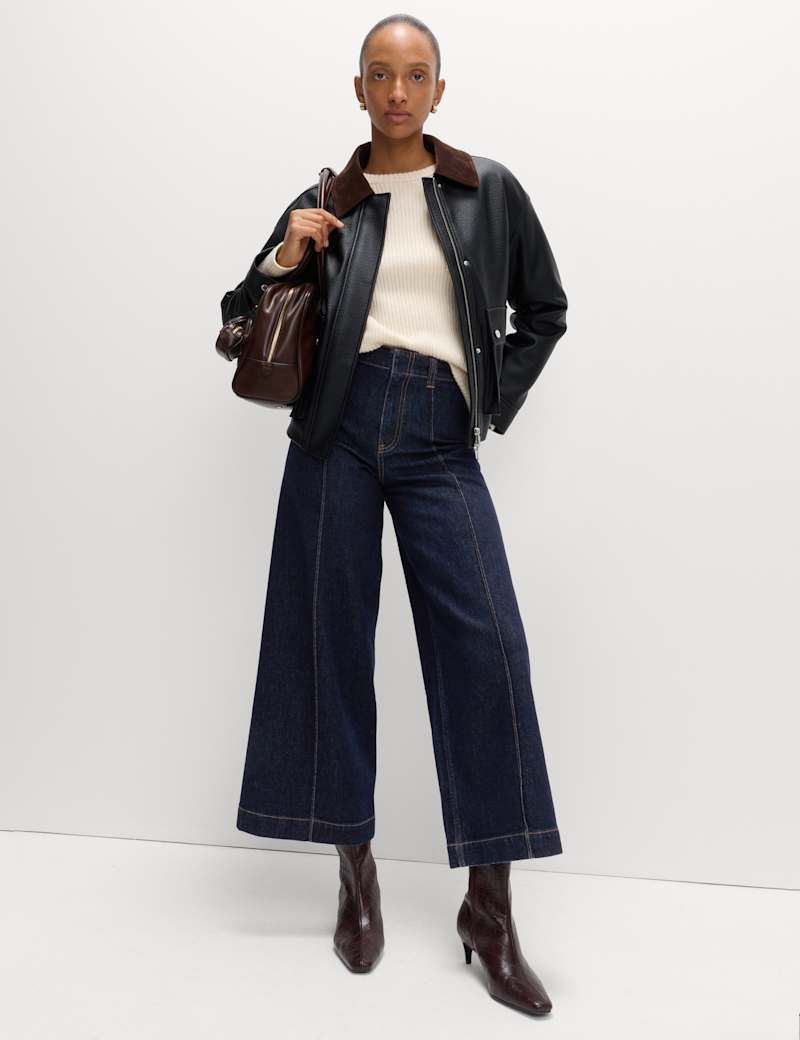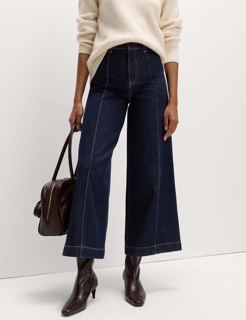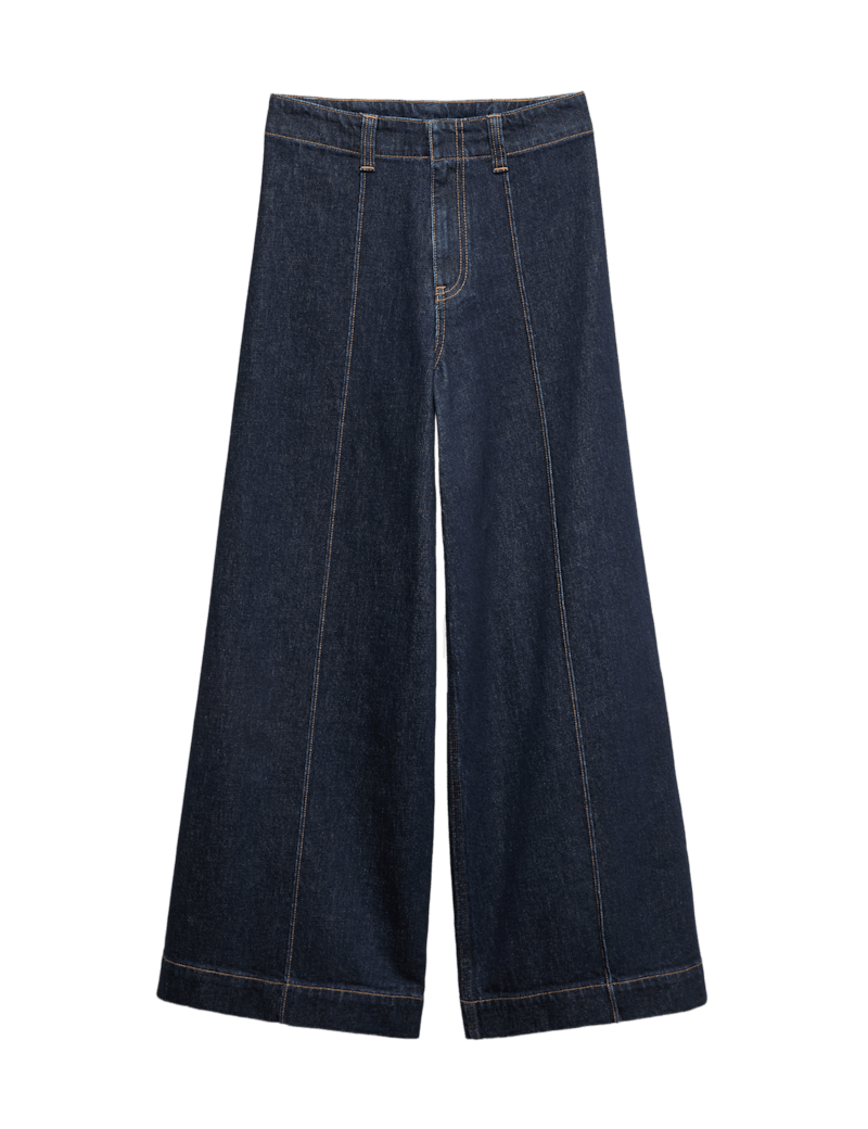 These wide-leg jeans feature a pintuck detail down the front for a smart and stylish look. Flattering ankle-grazer length and high waist. For ease of movement, we've added a touch of stretch to the cotton-rich denim.