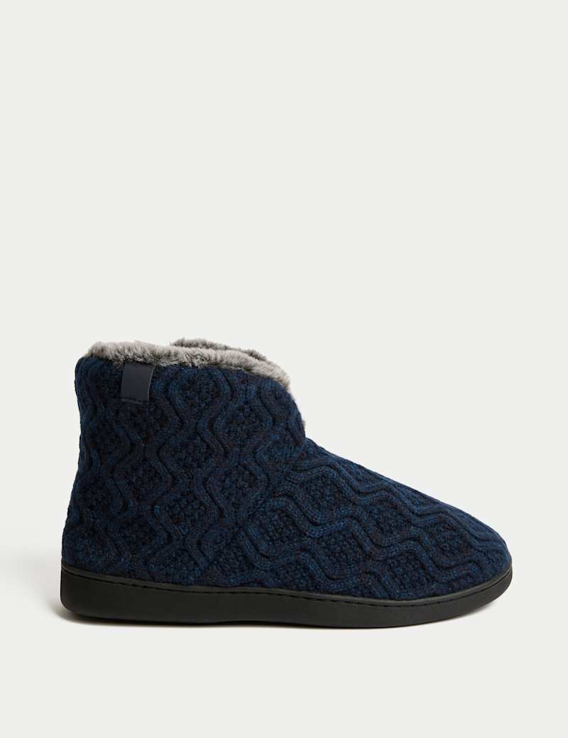 Go for a classic cosy look with these knitted slipper boots. Pull-on design, lined with warming faux fur. Our Freshfeet™ technology minimises odours to keep things feeling fresh.