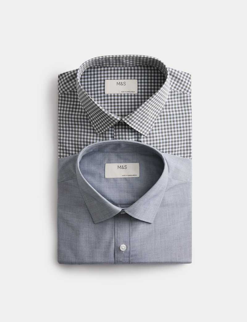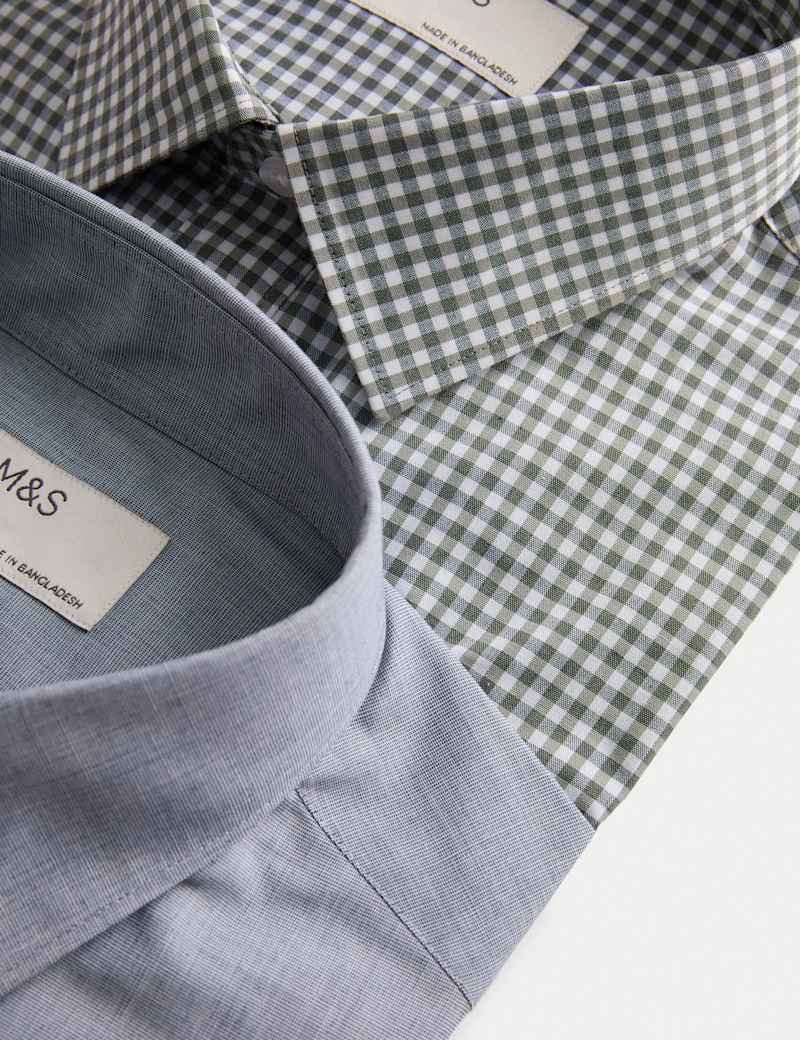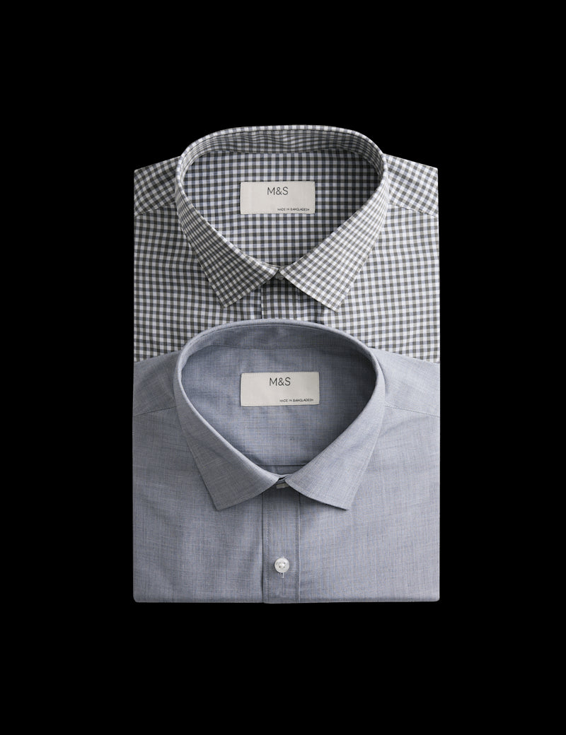 Add a classic to your smart wardrobe with these cotton-blend checked shirts. Made in a comfy regular fit with long sleeves and single cuffs. The easy-iron finish means they need no more than a quick press.