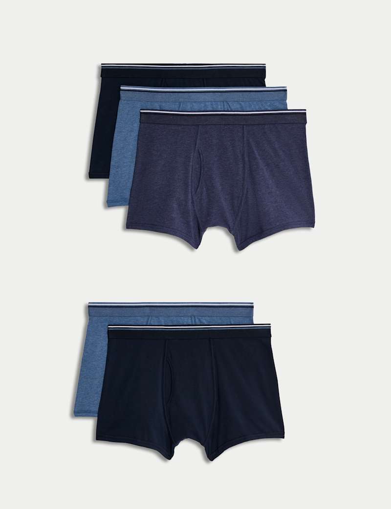 Comfortable, these stretch fabric trunks offer everyday ease with a contemporary edge. Cut to a regular fit with a fly front fastening, they feature a distinctive marl design complemented by a striped waistband. Cool & Fresh™ technology ensures all-day freshness, while StayNew™ innovation preserves colour and quality through repeated washing. Comes in a practical five-pack for daily rotation.