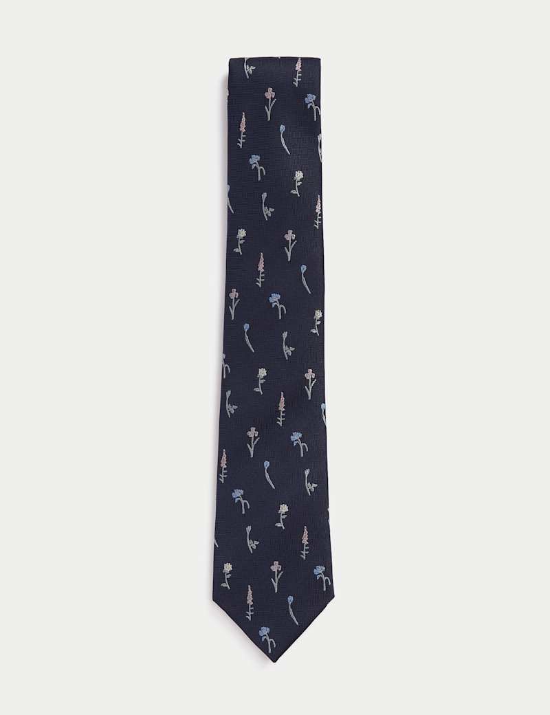 Add a touch of fun to your formalwear with this pure silk tie. The understated floral pattern is embroidered onto the fabric for a premium look.