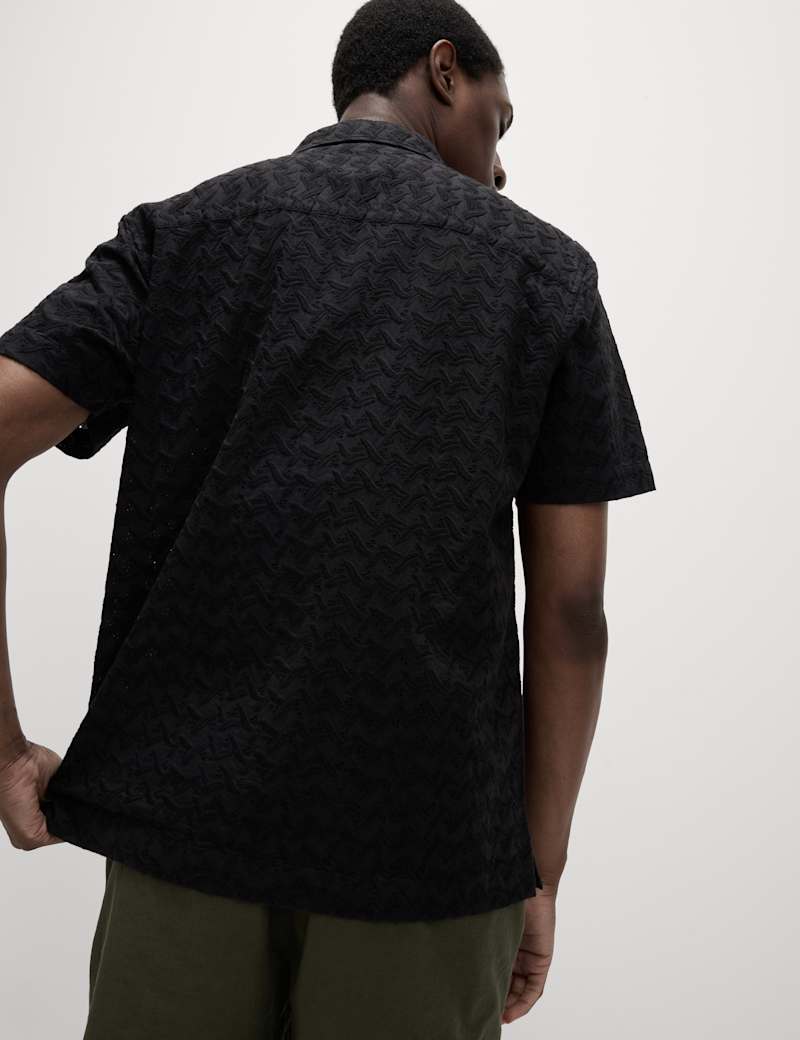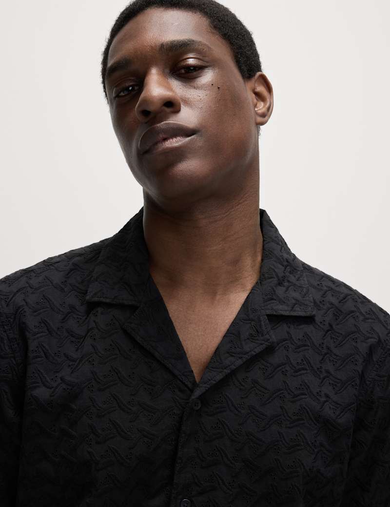 With its subtle all-over embroidered floral design, this soft and breathable pure cotton short-sleeved shirt is perfect for special occasions. It's cut to a comfortable regular fit. On-trend revere collar. Neat button-through fastening.