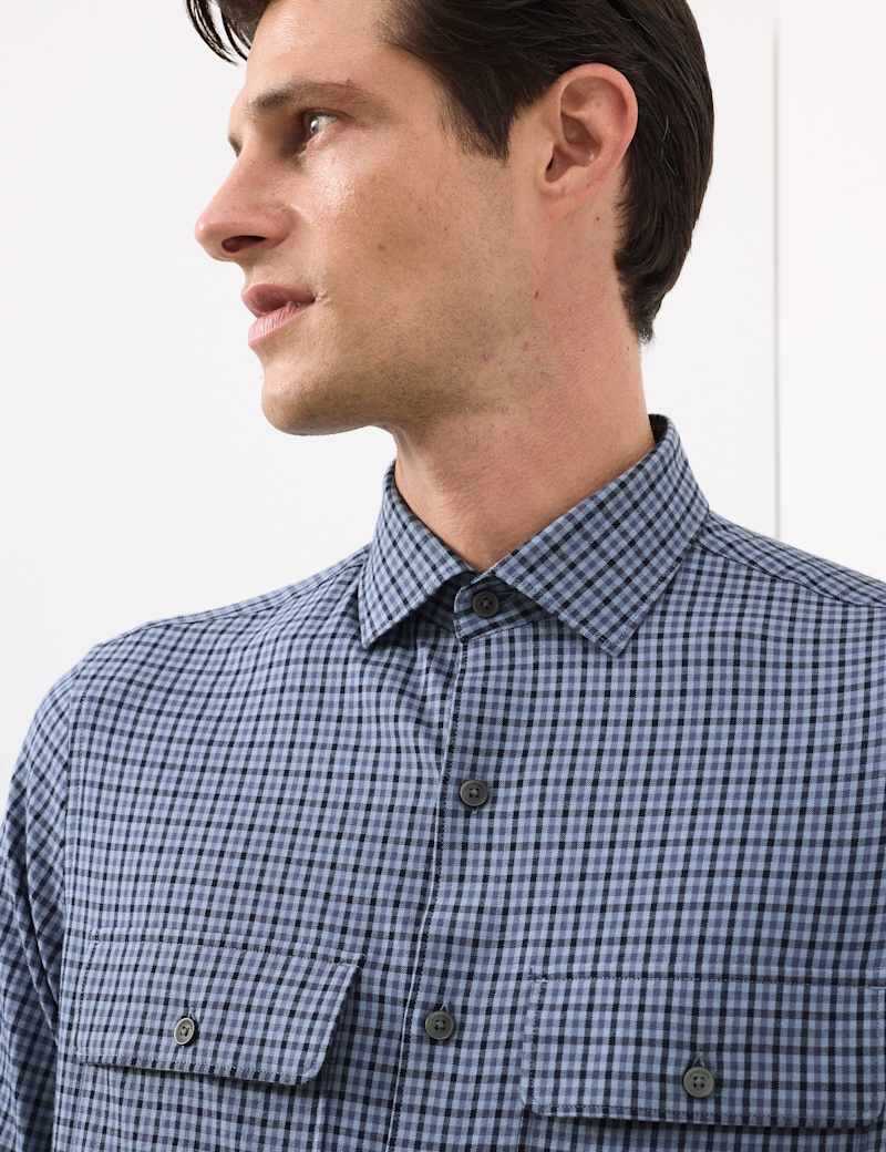 This cotton-rich check shirt from our Autograph collection is a refined take on a classic. It's made in a regular fit, with a button-through fastening. The fabric features added stretch for comfort and an easy-iron finish to help it stay crease-free. A neat collar and a chest pocket complete the look.