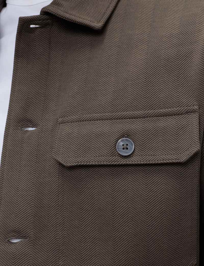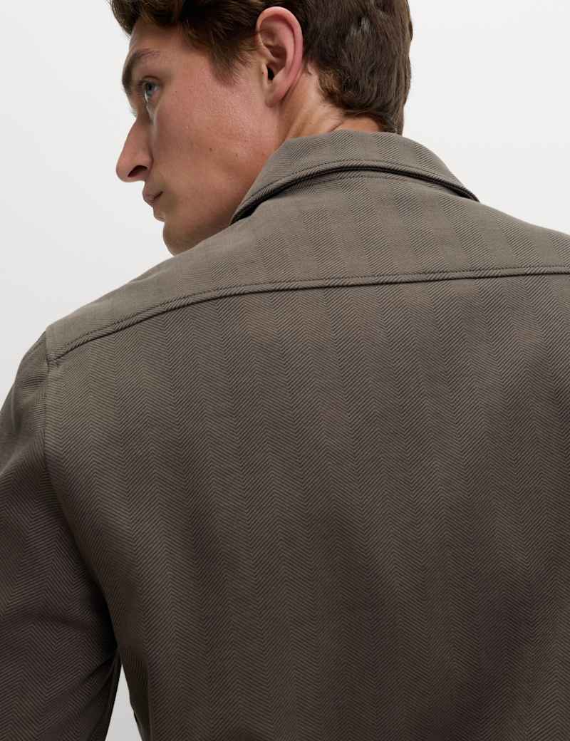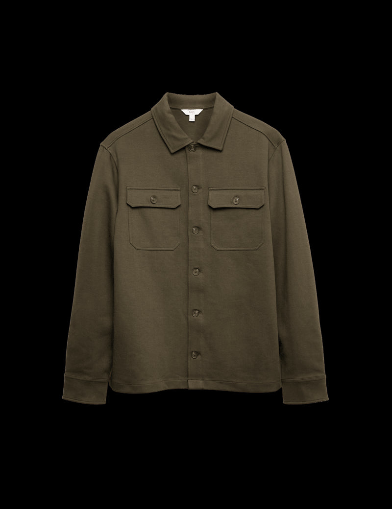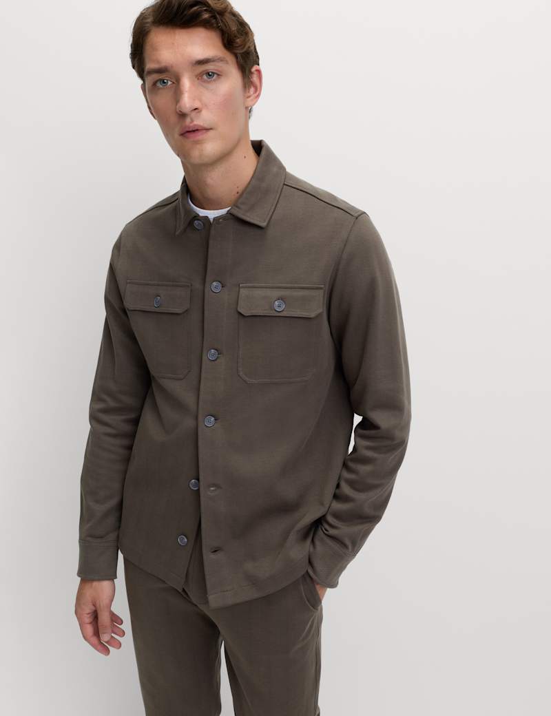 This soft and breathable cotton-rich overshirt is the perfect layering piece for cooler days. It's made in a regular fit. Added stretch gives you extra comfort and easy movement. It has a subtly textured herringbone weave. The collared neck and flap pockets add smart finishing touches. Button-through fastening.