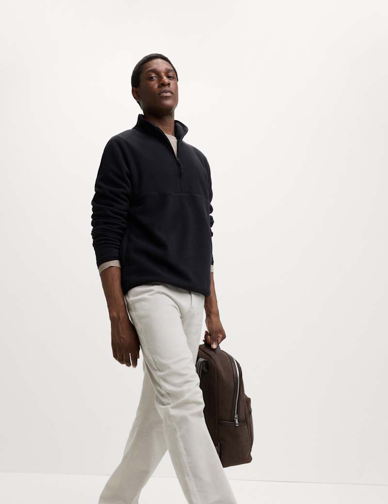 Stay snug in style with this textured fleece. Comfy regular fit. Funnel neck with half-zip fastening offers easy on-off.