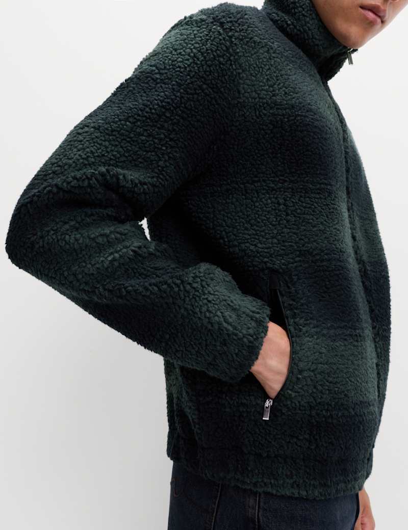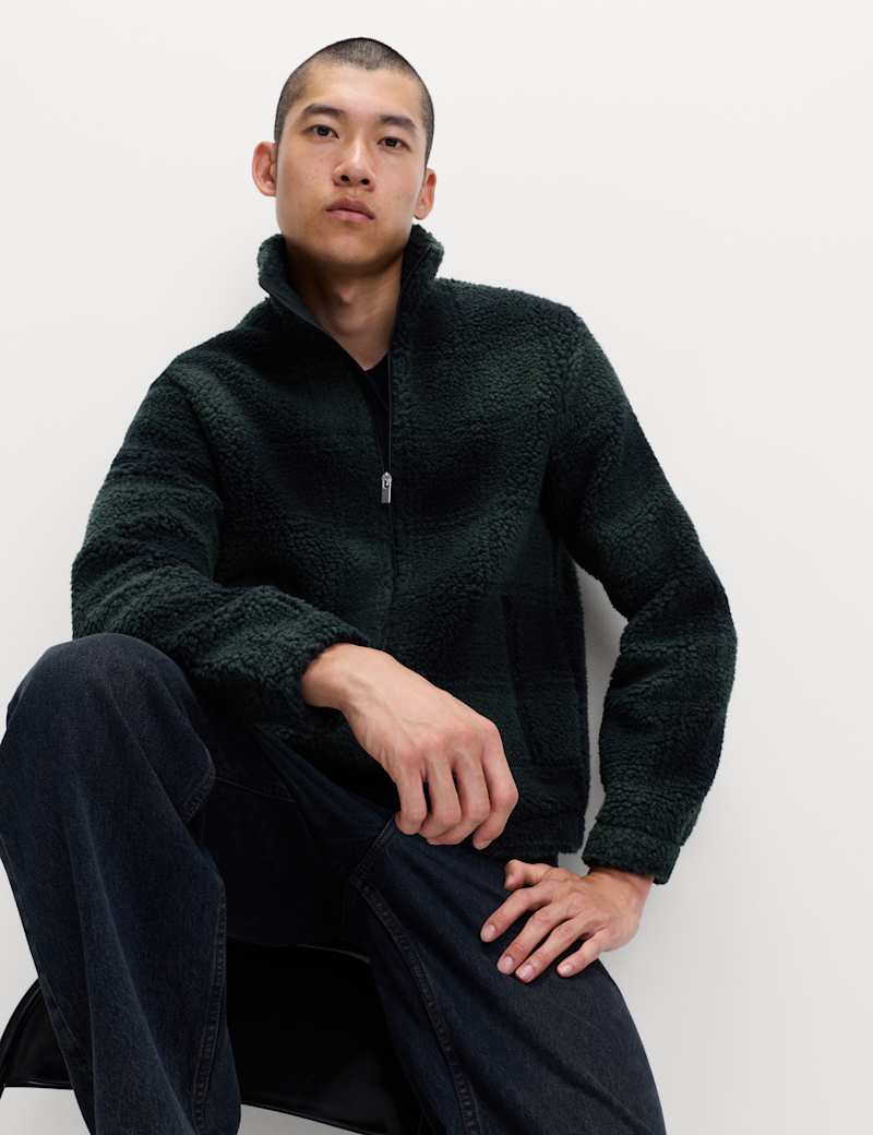 Keep out the cold in style with this fleece jacket. It's crafted in a regular fit, with a funnel neck and a jacquard check design for a smart look. Zipped pockets are perfect for keeping essentials safe. This piece is lined for extra warmth.