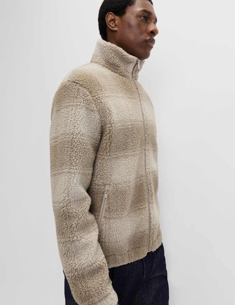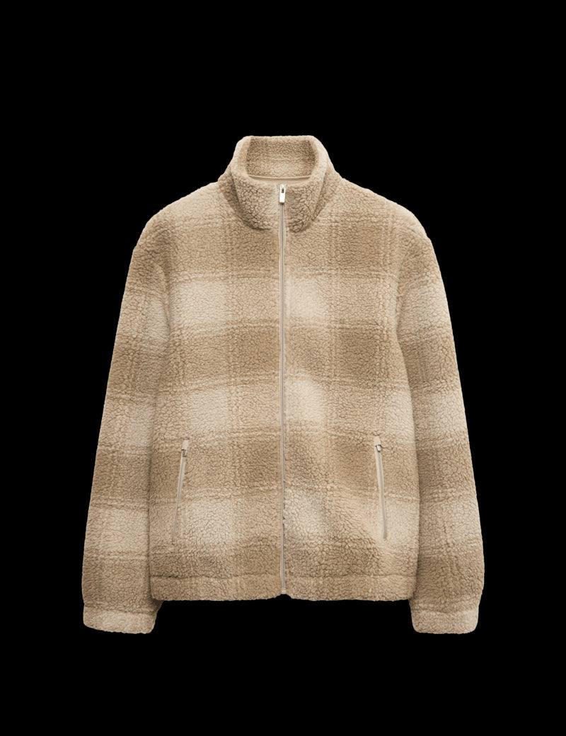 Fleece Jacquard Checked Zip Up Jacket
