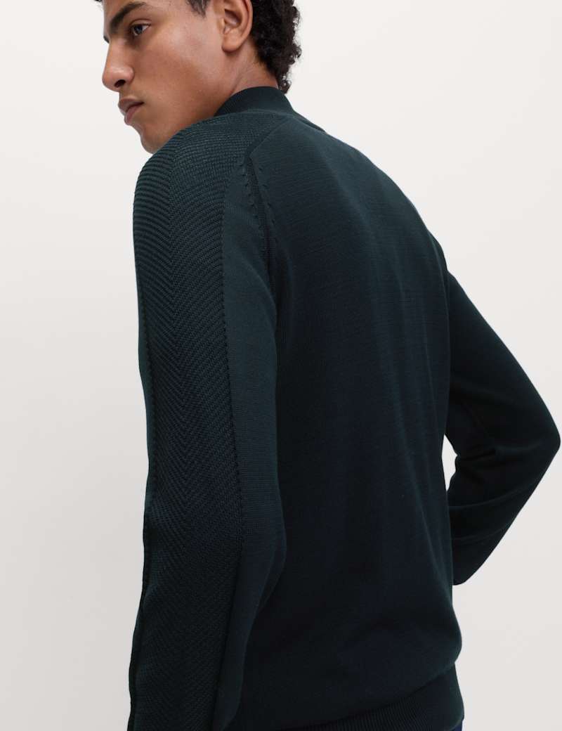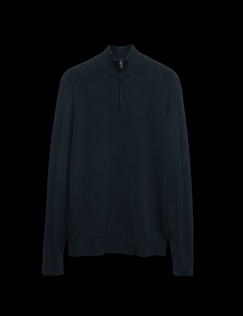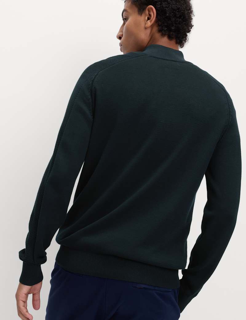 With a subtly textured stitch design decorating its sleeves, this jumper crafted from smooth modal and breathable cotton is ideal for smart-casual occasions. The half-zip fastening at the funnel neck ensures changing is quick and easy. Snug ribbed hem and cuffs.
