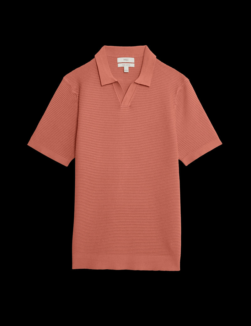 Pure Cotton Open Neck Ribbed Knitted Polo Shirt