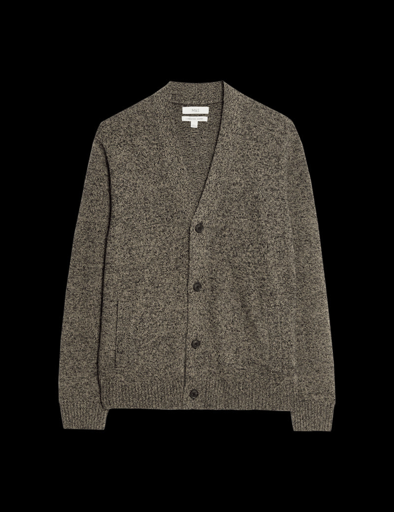 Layer up in timeless style with this lambswool-blend cardigan. It's crafted in a regular fit with a v-neckline for a casual look. A textured knit gives it a chunky feel. The ribbed placket and hem add smart finishing touches. M&S Collection: easy-to-wear wardrobe staples that combine classic and contemporary styles.