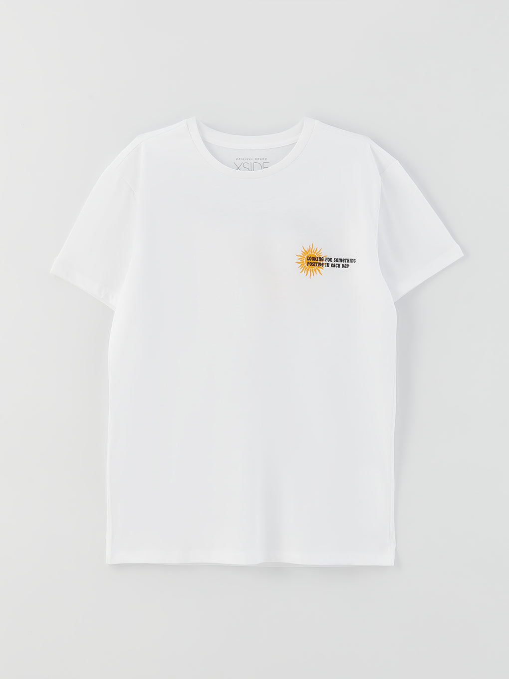 Crew Neck Short Sleeve Printed Combed Cotton Men's T-shirt