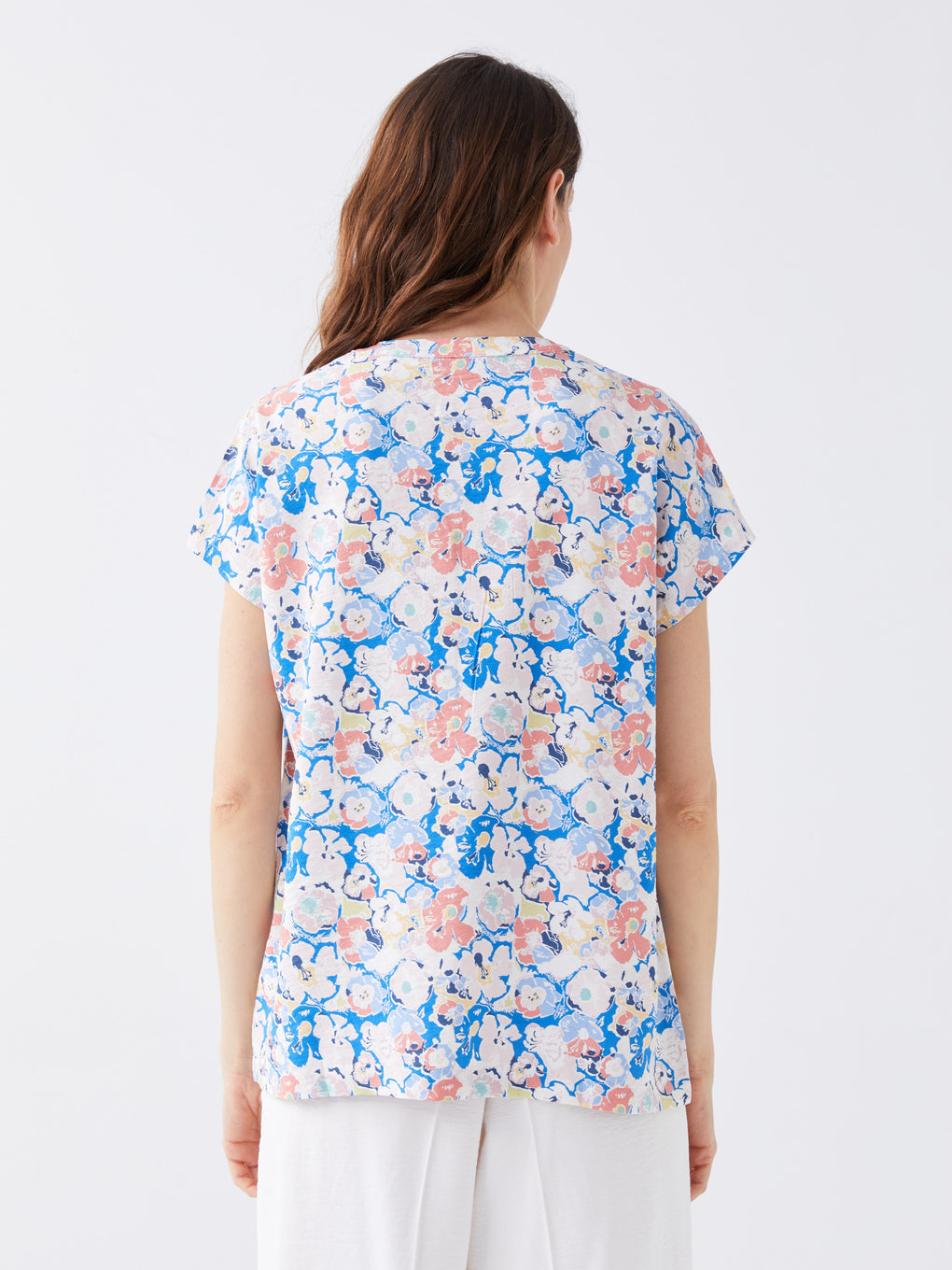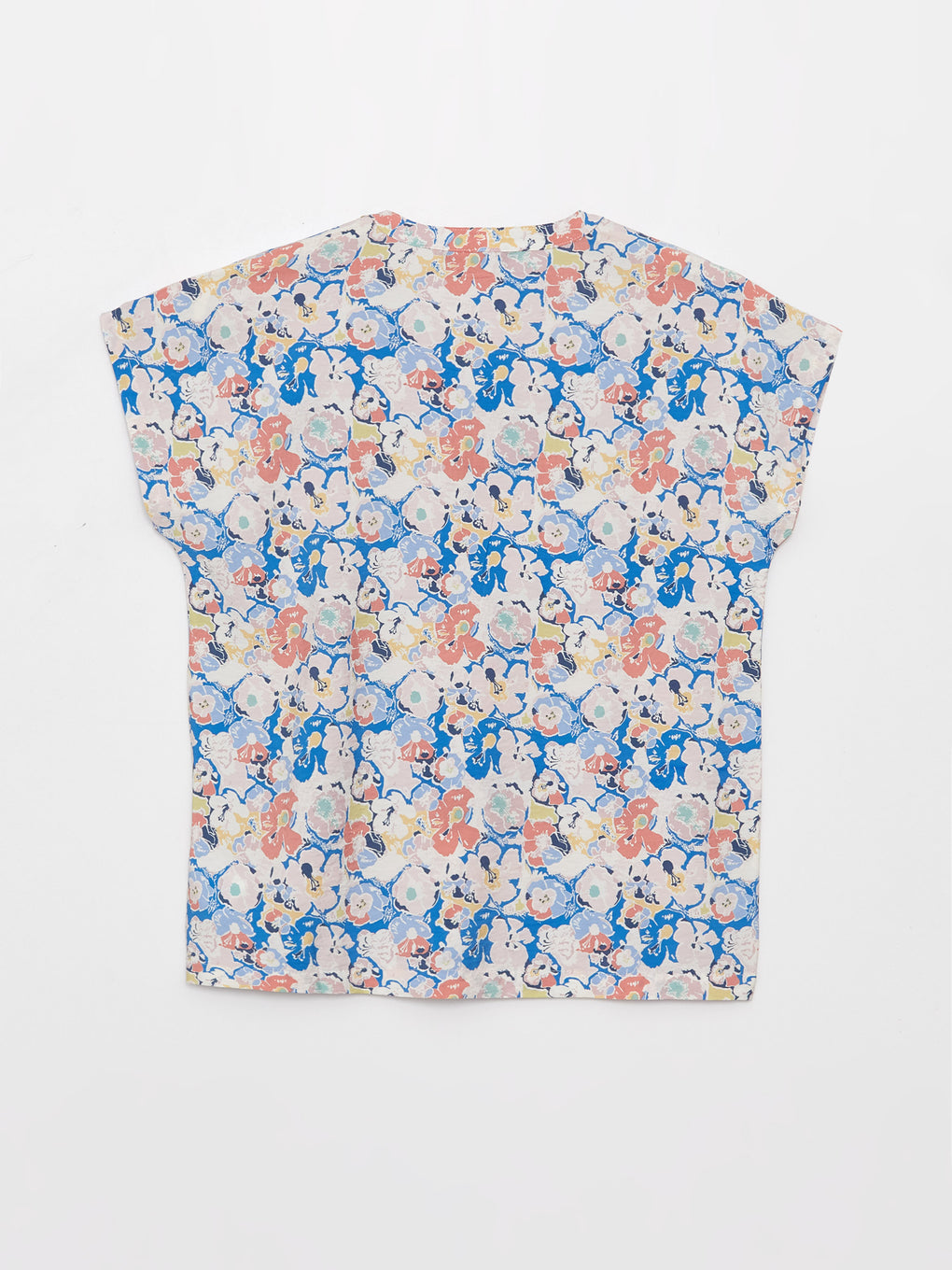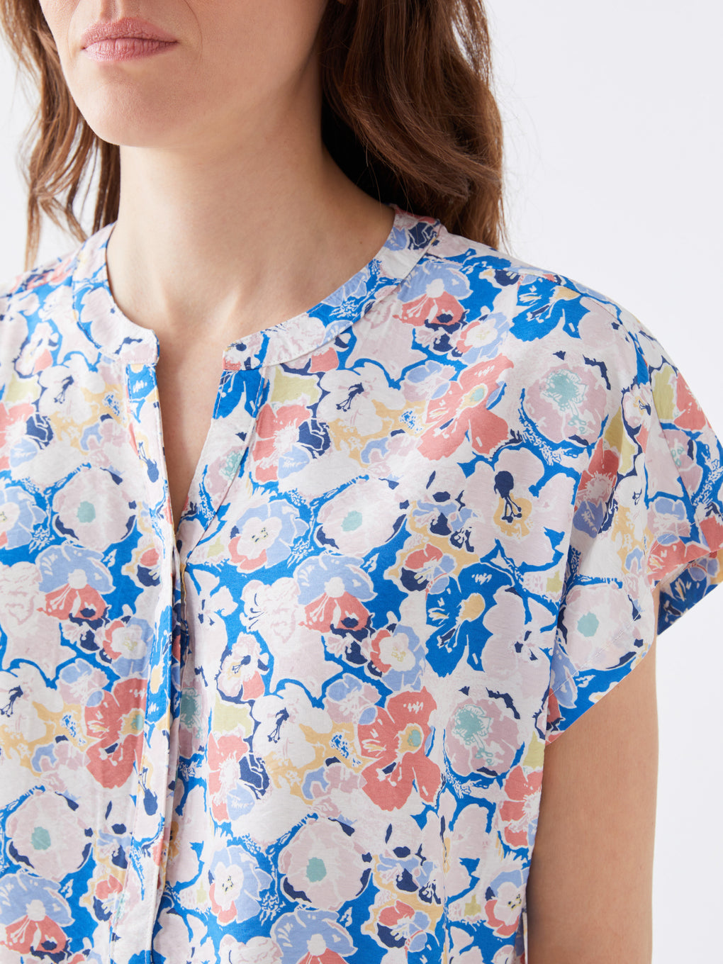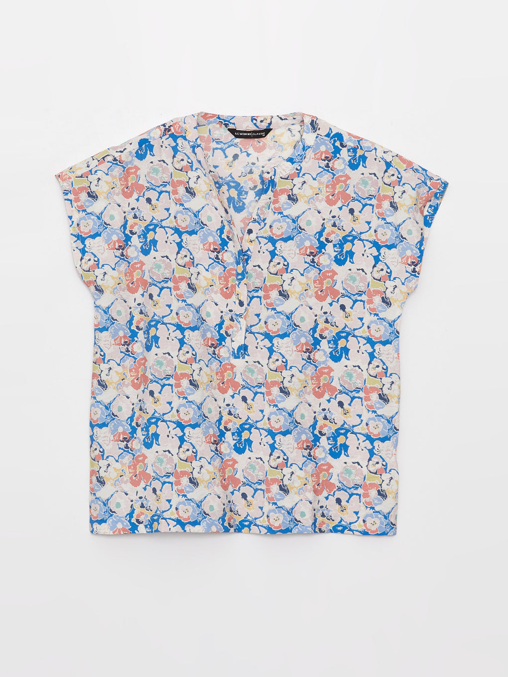 Henley Neckline Floral Short Sleeve Women's Blouse