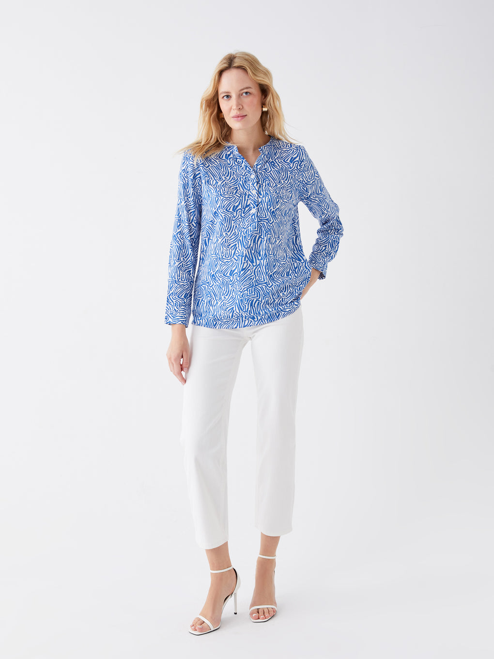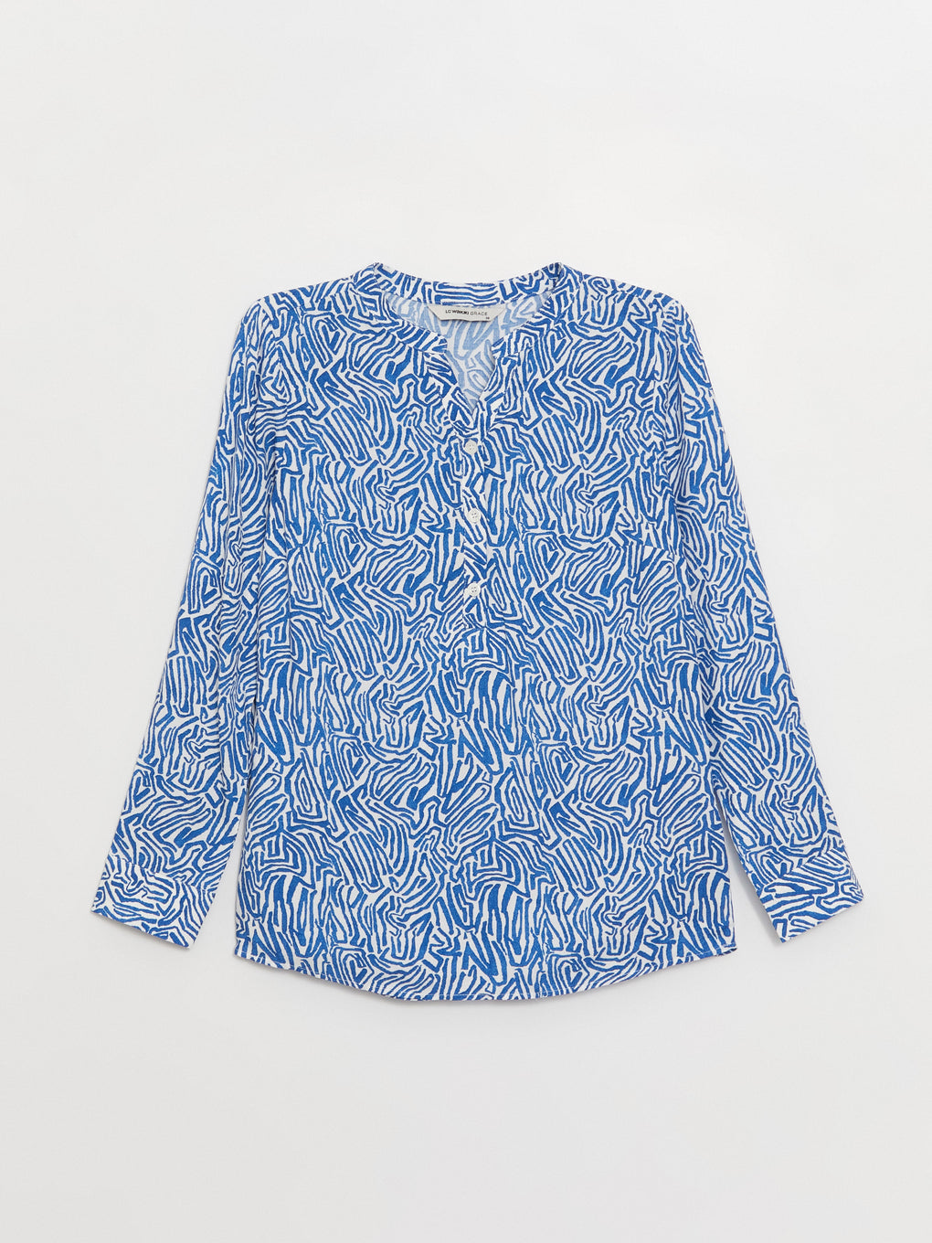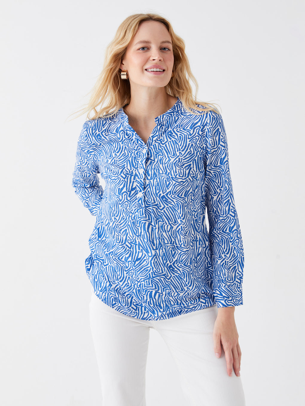 Henley Neckline Patterned Long Sleeve Women's Blouse